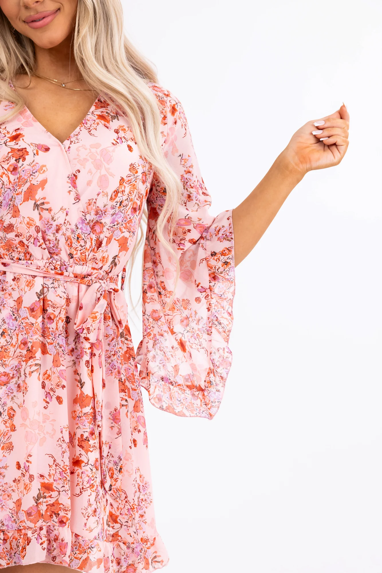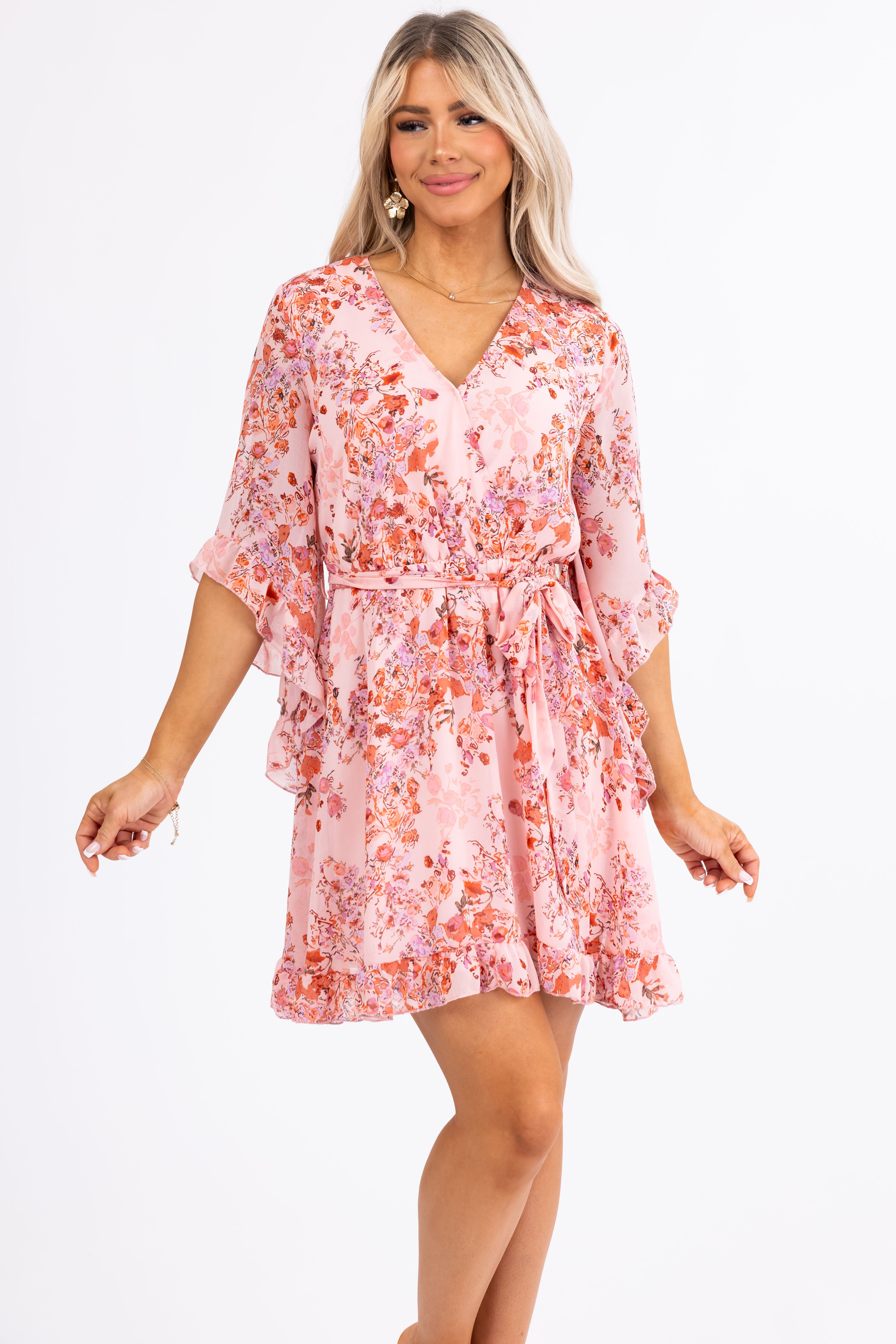 Indulge in the charm of this feminine Floral Print V-Neck Short Dress in a delightful palette featuring Blush, Salmon, Tawny, Black, and more. This dress boasts a gorgeous high-low design with ruffle hem, adjustable tie, and comfy elastic waistband. The non-stretchy woven fabric ensures a perfect fit, making it an ideal choice for various occasions from daytime gatherings to festive parties. Elevate your style with this lineup , crafted from 100% Polyester for a luxurious feel.