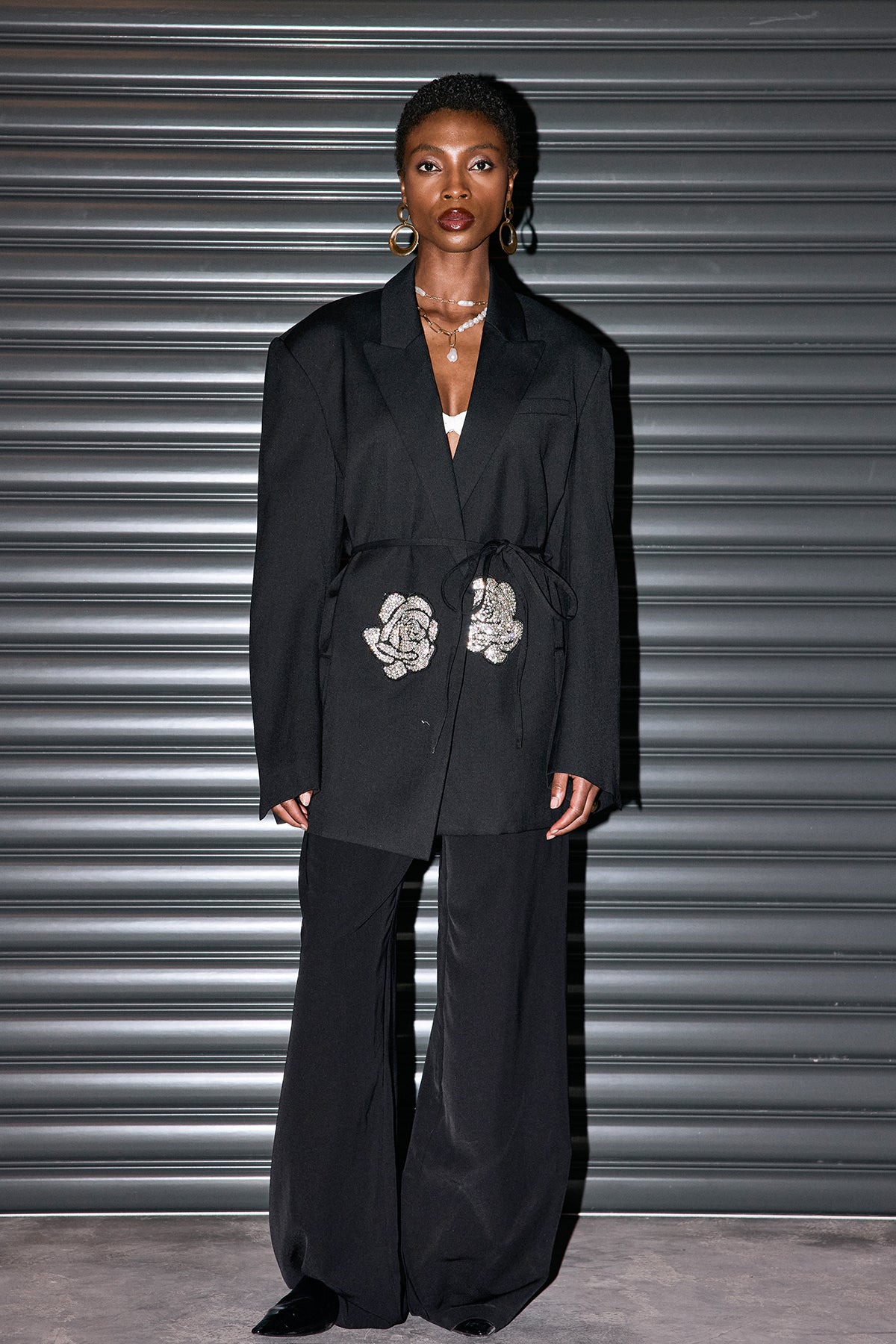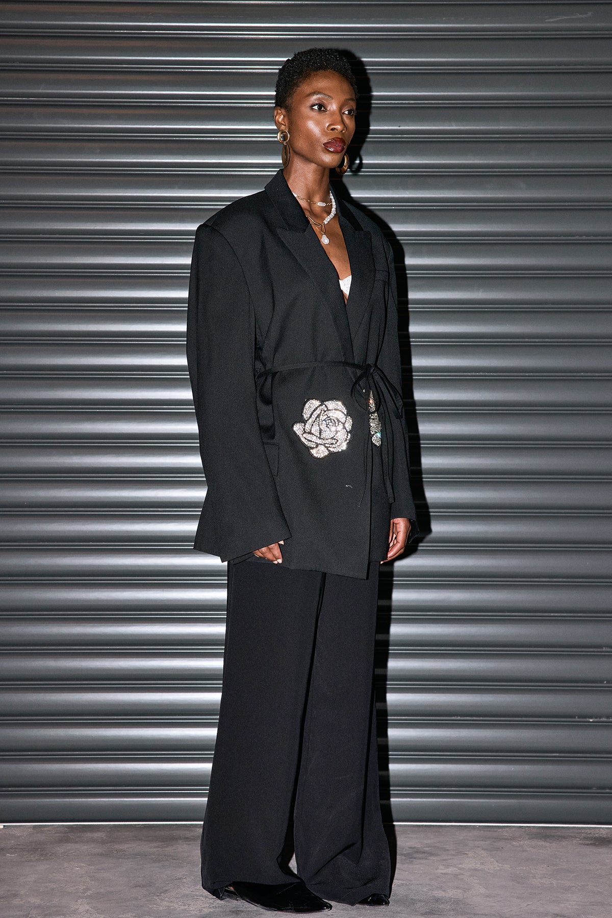 Elevate your wardrobe with our exquisite Floral Rhinestone Lace Up Blazer. Adorned with intricate rhinestones in a beautiful floral design, this blazer exudes sophistication and confidence. The lace-up closure adds a touch of edginess, making it perfect for formal occasions. Made of high-quality 100% Polyester, this blazer offers elegance and style. This non-stretch blazer is easy to care for with gentle machine wash. Please note that the color may vary slightly due to lighting. Look your best with this chic essential that ensures you stand out from the crowd and feel empowered. *Belt not included.