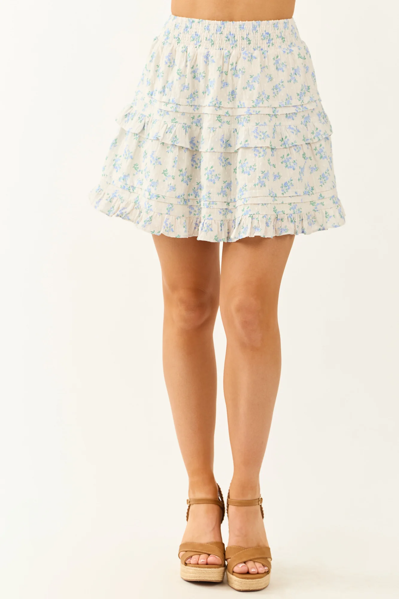 Indulge in the charming appeal of the Floral Ruffle Tiered Skirt in shades of Jungle Green and Cobalt. This non-stretchy woven skirt features an elastic waistband for a comfortable fit and measures 17″ in length. Made of 100% Cotton with a 100% Polyester lining, this skirt is perfect for the spring and summer seasons. Machine wash cold, tumble dry low, and iron on low if needed. Available in sizes S, M, and L.