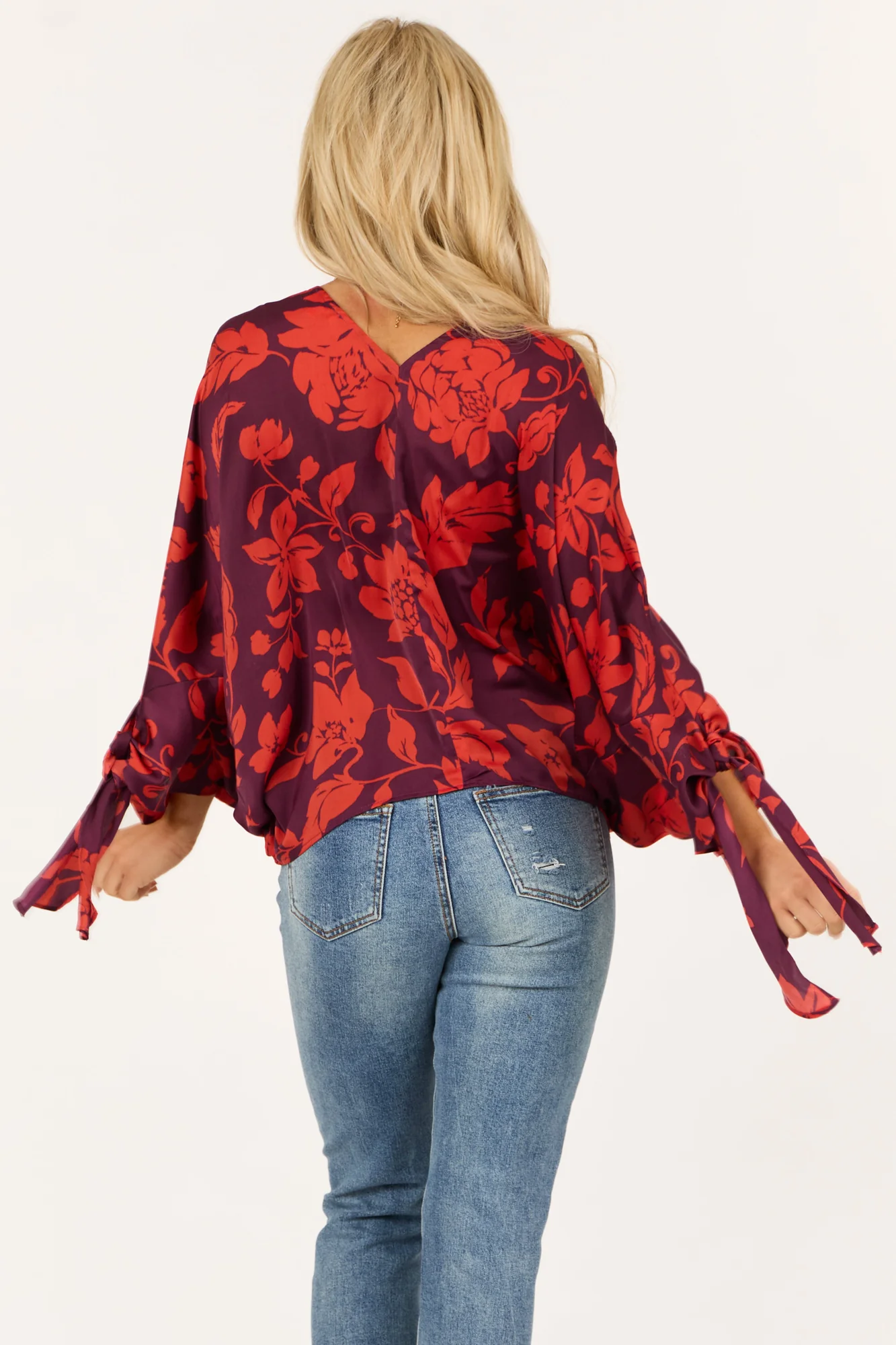 Indulge in luxury with our Floral Satin Dolman Sleeve Top, designed for comfort and style. Available in three sizes, this relaxed-fit blouse features stunning tie details, a V neck and back, and 3/4 length dolman sleeves. Crafted from non-stretchy 100% polyester satin for a chic look. Hand wash cold for best care. Ideal for a night out or everyday elegance. Embrace uniqueness as fabrics may vary slightly. Stand out in this exquisite piece! Free shipping available.