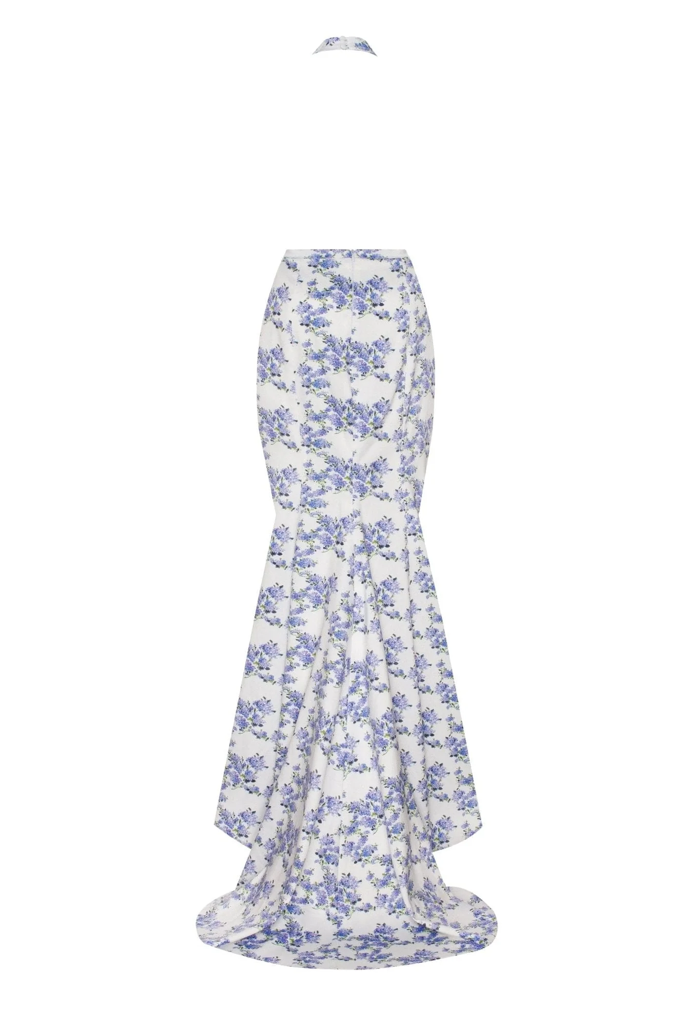 Indulge in the elegance and romance of the Floral Satin Maxi Dress. Crafted from luxurious stretch satin, this sleeveless dress features a chic mock neck, bold open back, and a high front slit for added allure. The straight silhouette with a ruched waist exudes sophistication. Complete with a luxurious floral maxi puffy underskirt, this dress is perfect for special occasions. Hand wash cold. Discover the versatility and timeless beauty of this stunning dress today!