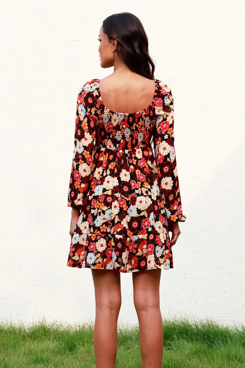Indulge in the elegance of the Floral Smocked Balloon Sleeve Tiered Dress. Crafted with 100% polyester, this dress features a smocked design, balloon sleeves, and tiered silhouette. It offers a slight stretch for comfort and is machine washable for easy care. Elevate your style effortlessly in this versatile piece that transitions seamlessly from day to night. Available sizes: S, M, L, XL.