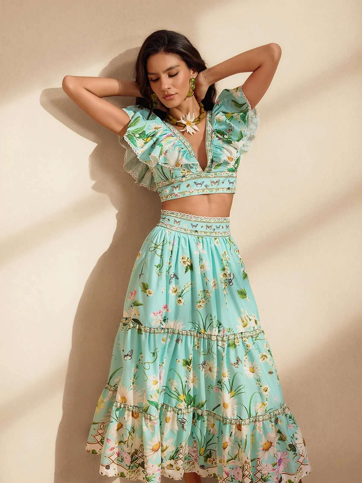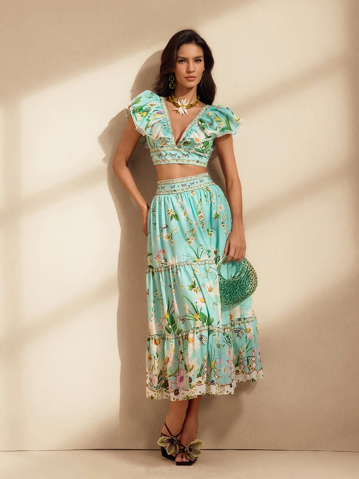 Elevate your wardrobe with this stunning Floral V Neck Skirt Set designed to blend elegance and comfort effortlessly. This set features a flattering V-neckline and a vibrant floral print, perfect for any occasion. Crafted from lightweight 100% Polyester with a slight stretch for all-day comfort. The set includes a coordinating skirt for a polished look, making it ideal for brunches, garden parties, or casual outings. Embrace your confidence and charm with this versatile floral ensemble. Color may vary due to lighting. Sizes: S, M, L, XL. Care: Dry clean only.