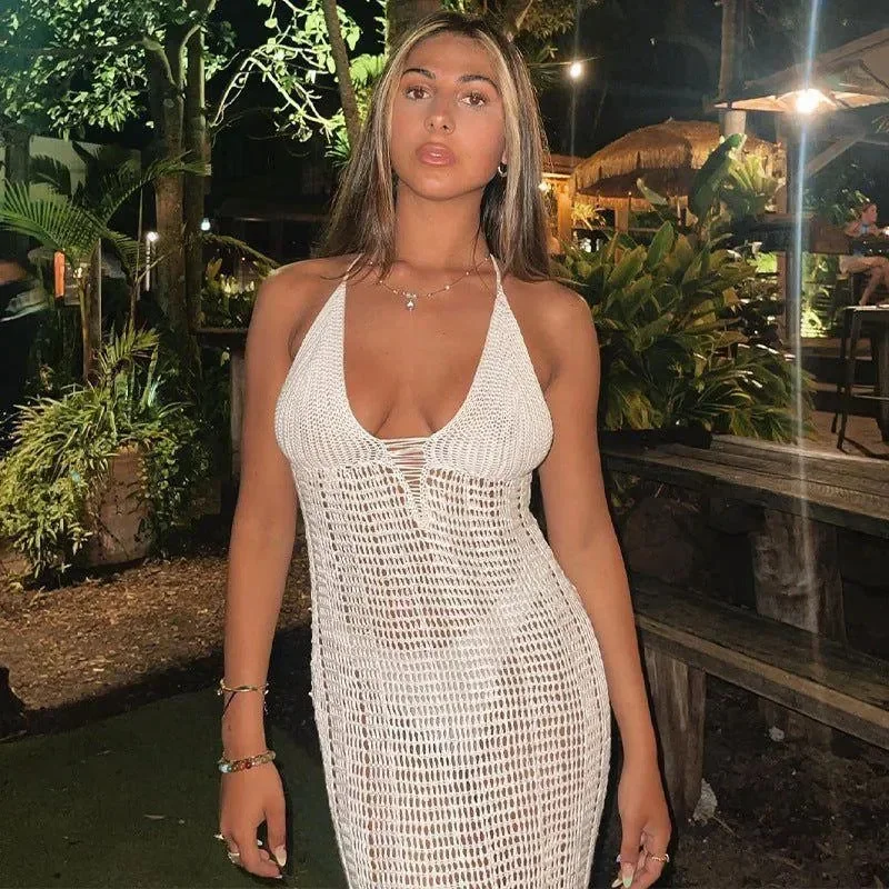 Elevate your beach style with the Flowing Mesh Beach Cover-Up Maxi Dress. This versatile piece features delicate mesh details, adjustable straps, and a relaxed fit, making it perfect for layering over swimwear or a casual outing. The light and airy fabric blend of Polyester and Spandex offers both comfort and elegance. Transition effortlessly from the beach to any occasion with this chic cover-up maxi dress .