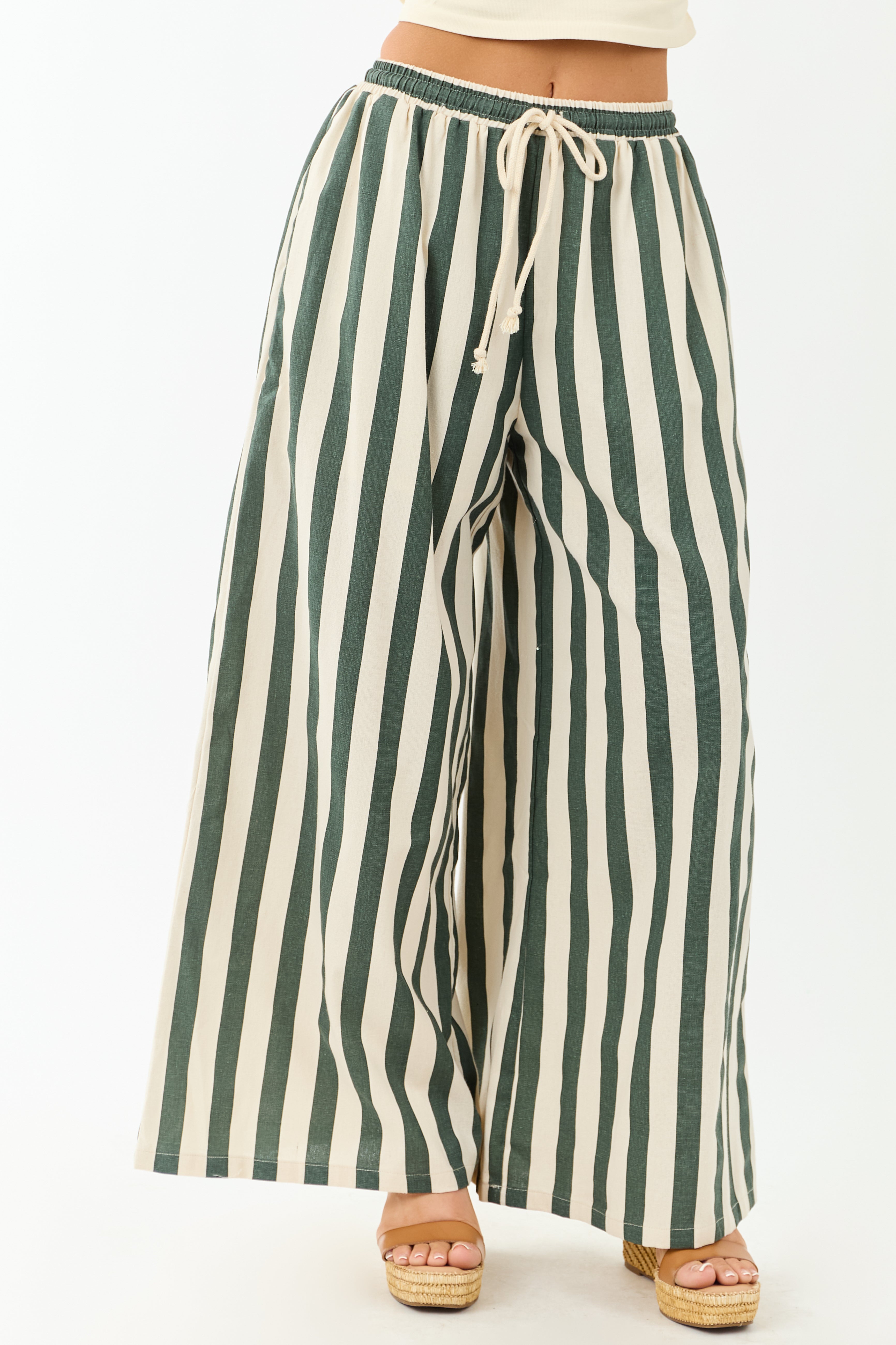 Discover the perfect blend of earthy tones and elevated style with our flowy linen blend wide leg pants. Available in sizes small, medium, and large to fit waist sizes ranging from 26 to 32 inches with inseams of 28 to 29 inches. These non-stretchy pants feature a stretchy smocked waistband, adjustable drawstring, side pockets, shorts lining, and are made from a composition of 30% Linen, 30% Cotton, 20% Polyester, and 20% Viscose. Imported for quality assurance. Please note that variations may occur due to the unique cutting and sewing process. Embrace the individuality and charm of each piece. Our model is wearing a size Small. Model Dimensions: Size 1, Height 57″, Bust 34″, Waist 26″.
