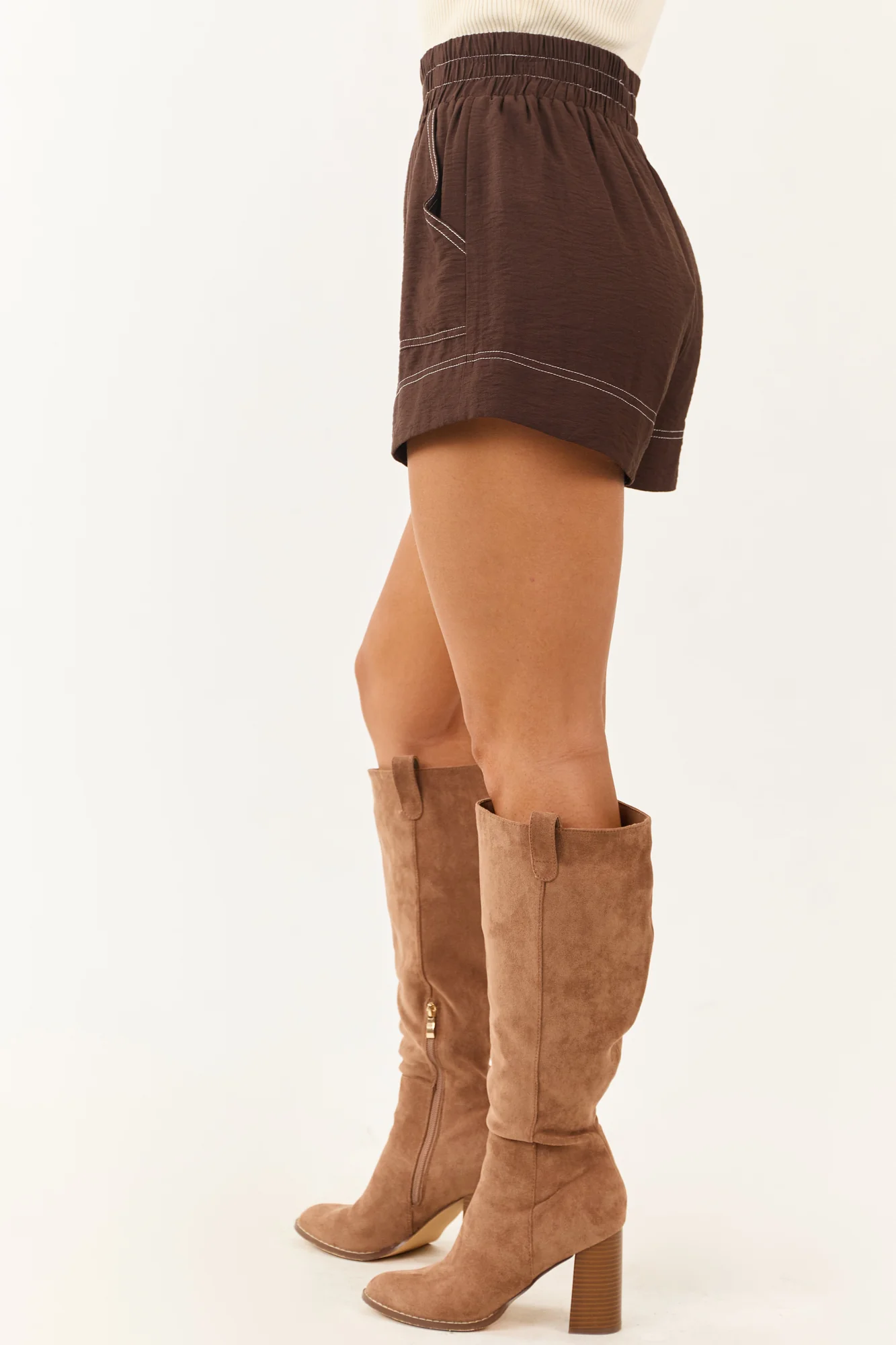 Discover ultimate comfort and style with our flowy cocoa brown shorts. These versatile bottoms feature an elastic waistband, contrast stitching, and side pockets for added convenience. Crafted from a blend of 85% Rayon and 15% Nylon, these shorts are perfect for any casual occasion. Embrace the relaxed fit that stays true to size, ensuring a flattering look for all body types. The lined design adds a touch of sophistication, making these shorts a must-have for your wardrobe. Ideal for everyday wear or dressing up with accessories, these cocoa brown shorts will become your go-to choice. Available in sizes S, M, and L with inseams of 3″, 3.25″, and 3.5″.