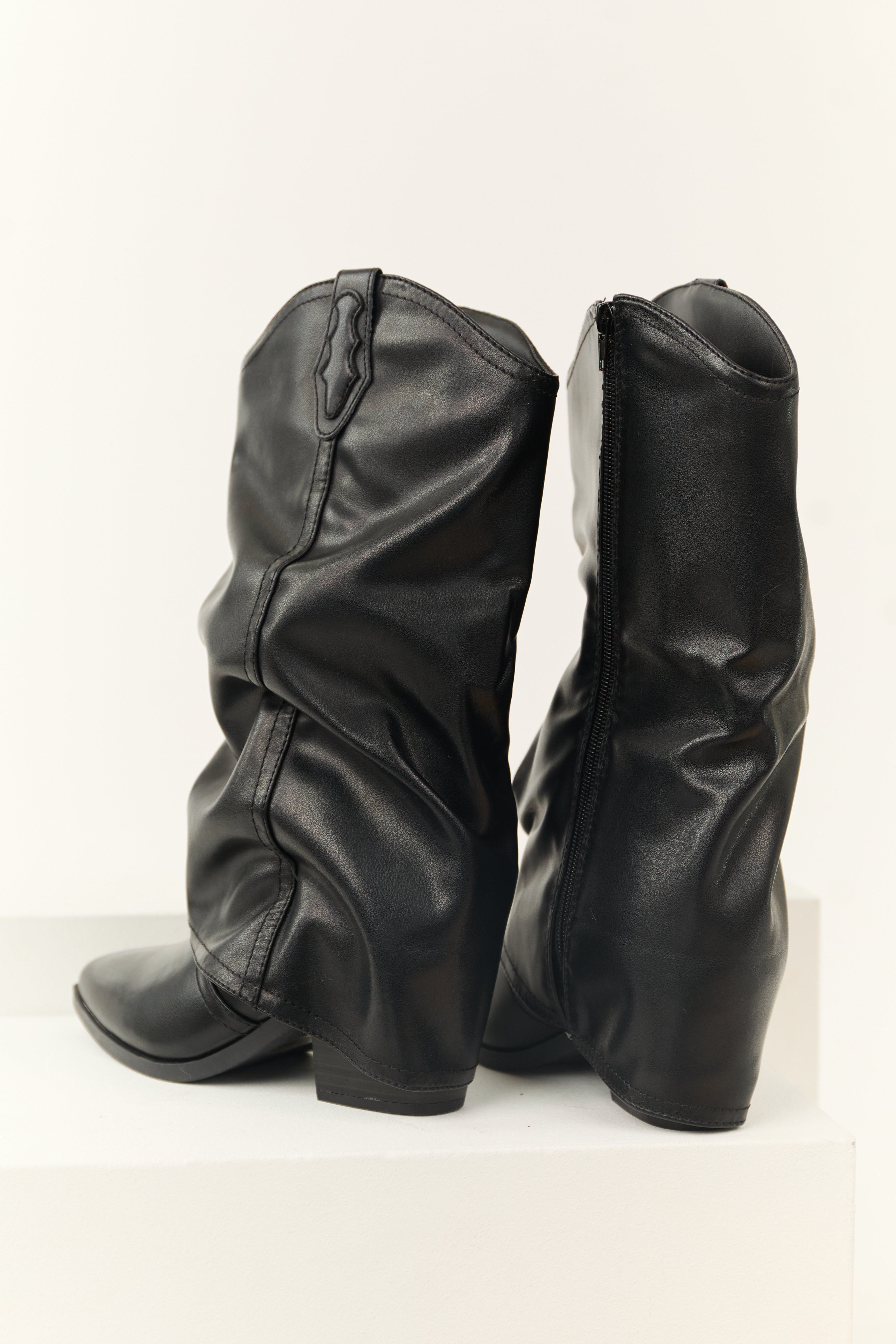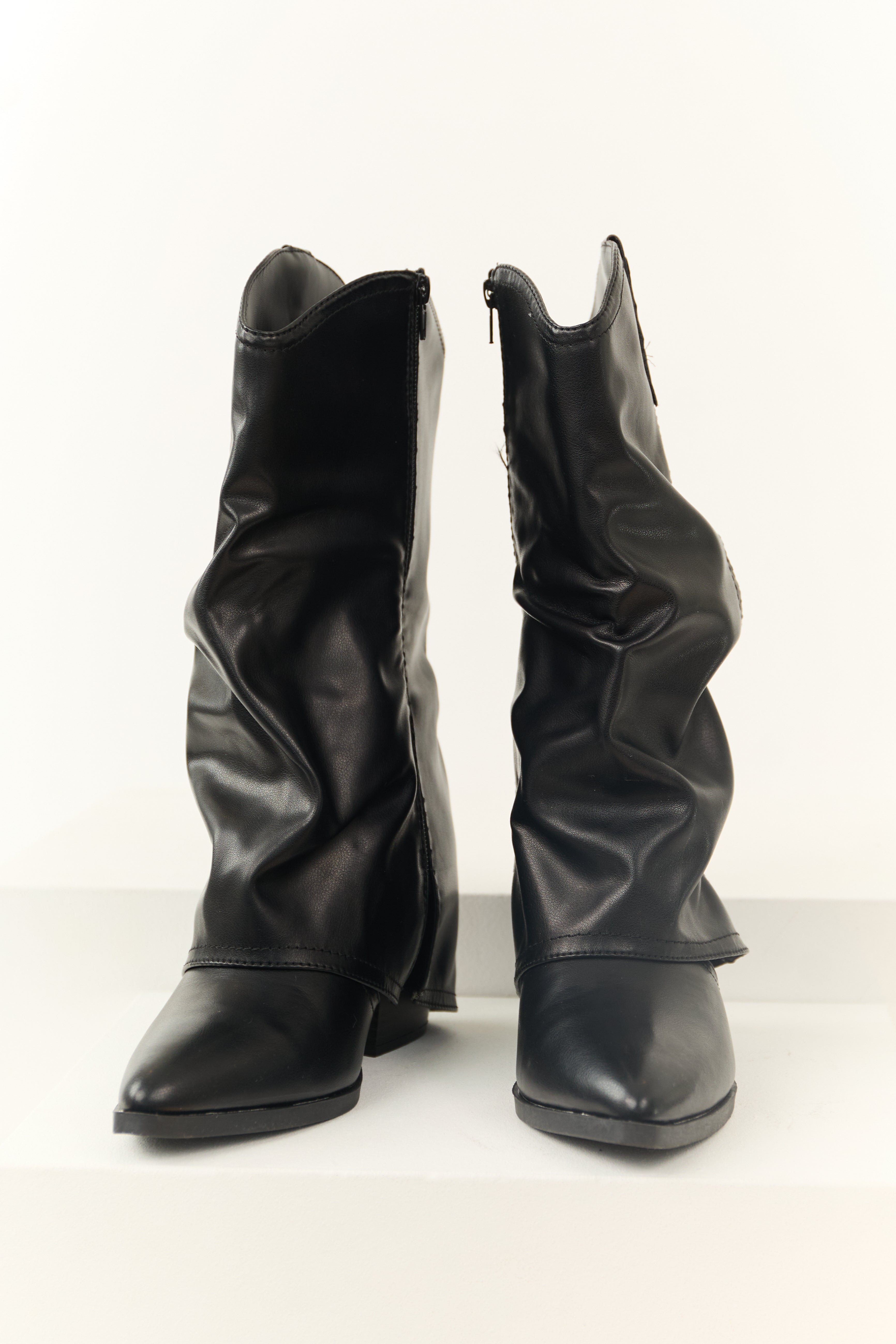 Step out in style with these fashionable Foldover Black Faux Leather Ankle Boots. Crafted from faux leather with a pointed toe, a lightly cushioned insole, and a rubber sole, these boots offer both comfort and elegance. Featuring a 2.75″ heel and measuring 13″ in shaft height and 16″ in circumference, these versatile boots are perfect for any occasion, from date nights to casual outings. Available in sizes 5.5 to 10.