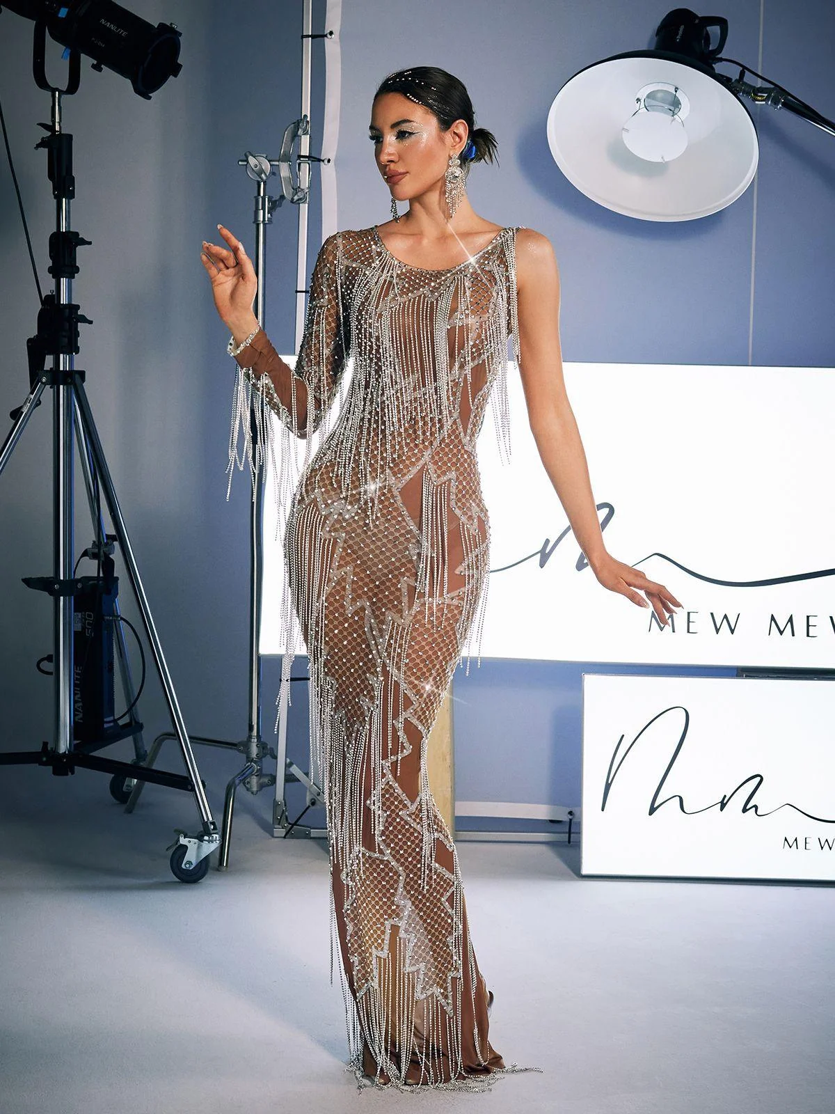 Indulge in glamour wearing our Fringe Hem Printed Maxi Dress. This stunning dress features a bold print, intricate rhinestone detailing, and playful fringe hem for a standout look. Made of 100% Polyester with a slight stretch and an invisible zipper at the back. Feel confident and turn heads with this must-have dress. Dry clean only. Color variations due to lighting. Model wears size S.