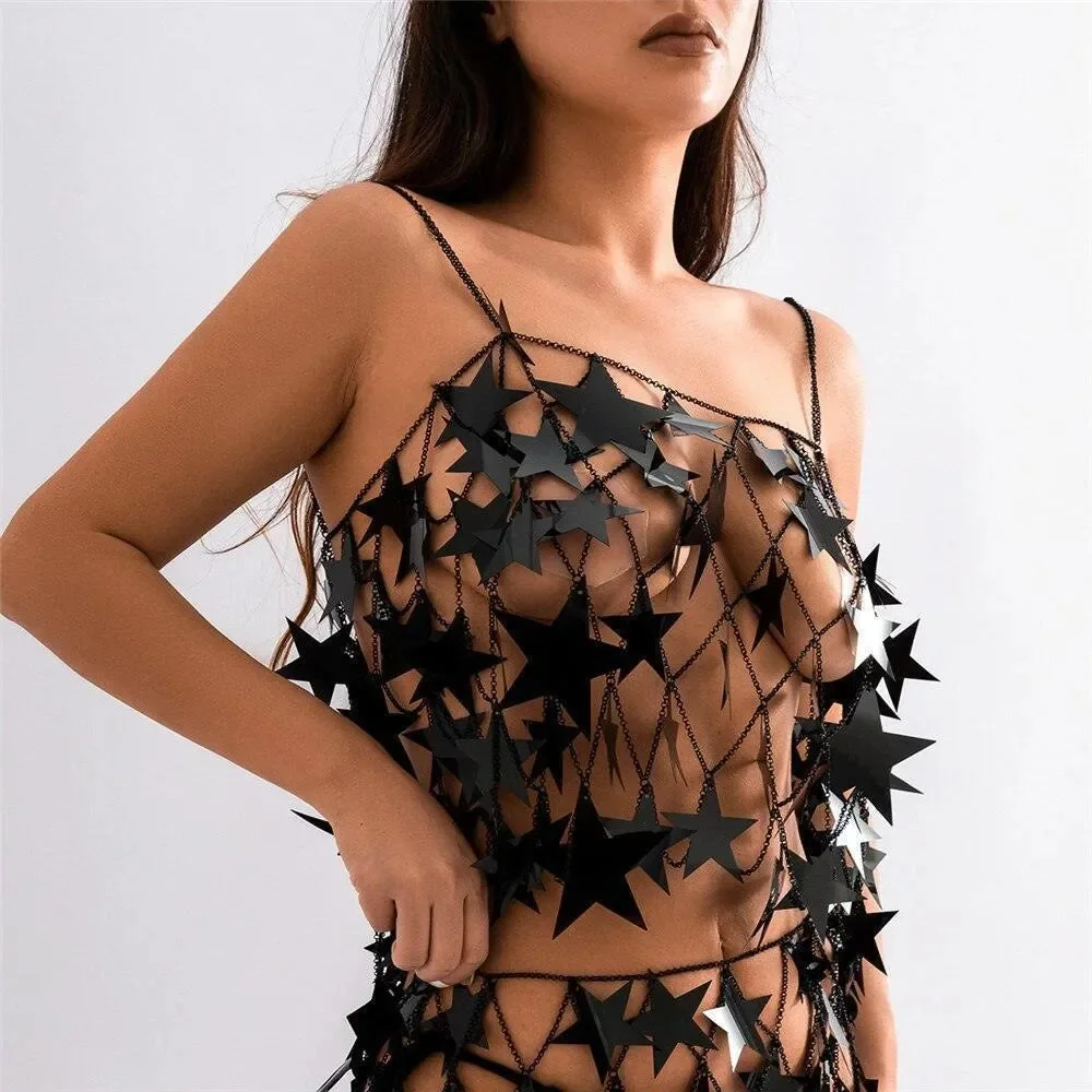 Elevate your evening with this stunning matching set adorned with shimmering sequins and chic chainmail accents. The set features a fitted top and a high-waisted skirt, sculpting an elegant figure ideal for formal events. Its dazzling embellishments add a touch of luxury and sophistication to your look. Complete the ensemble with classy heels for a memorable impression. This set caters to all sizes with its adjustable design and extra links for a customized fit. Available in silver, black, and pink, this set is made from premium materials ensuring both comfort and style. Enjoy a free replacement or local tailoring support for the perfect fit. For more style ideas, visit us on Instagram @mermaid_way and revamp your wardrobe effortlessly.
