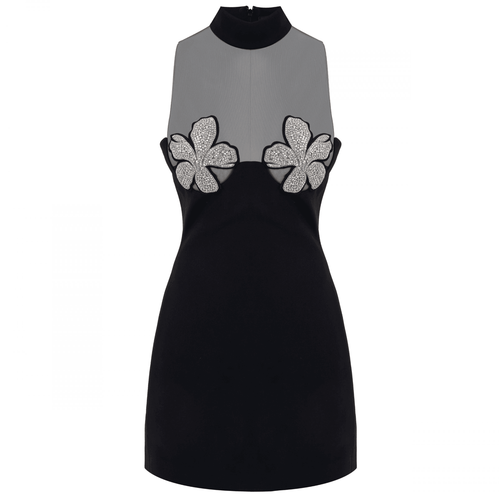 Elevate your style with our enchanting Black Crystal Mesh Minidress. This head-turning piece is adorned with intricate crystal detailing that exudes sophistication and charm. Whether youre attending a special event or a night out, the figure-flattering silhouette accentuates your curves while the airy mesh fabric provides lasting comfort. The glistening crystals playfully dance in the light, creating a luxurious shimmer. Versatile and chic, this Minidress is a wardrobe essential for anyone seeking to dazzle and impress. Discover endless styling inspiration on Instagram @mermaid_way. Enjoy a free size exchange if needed.