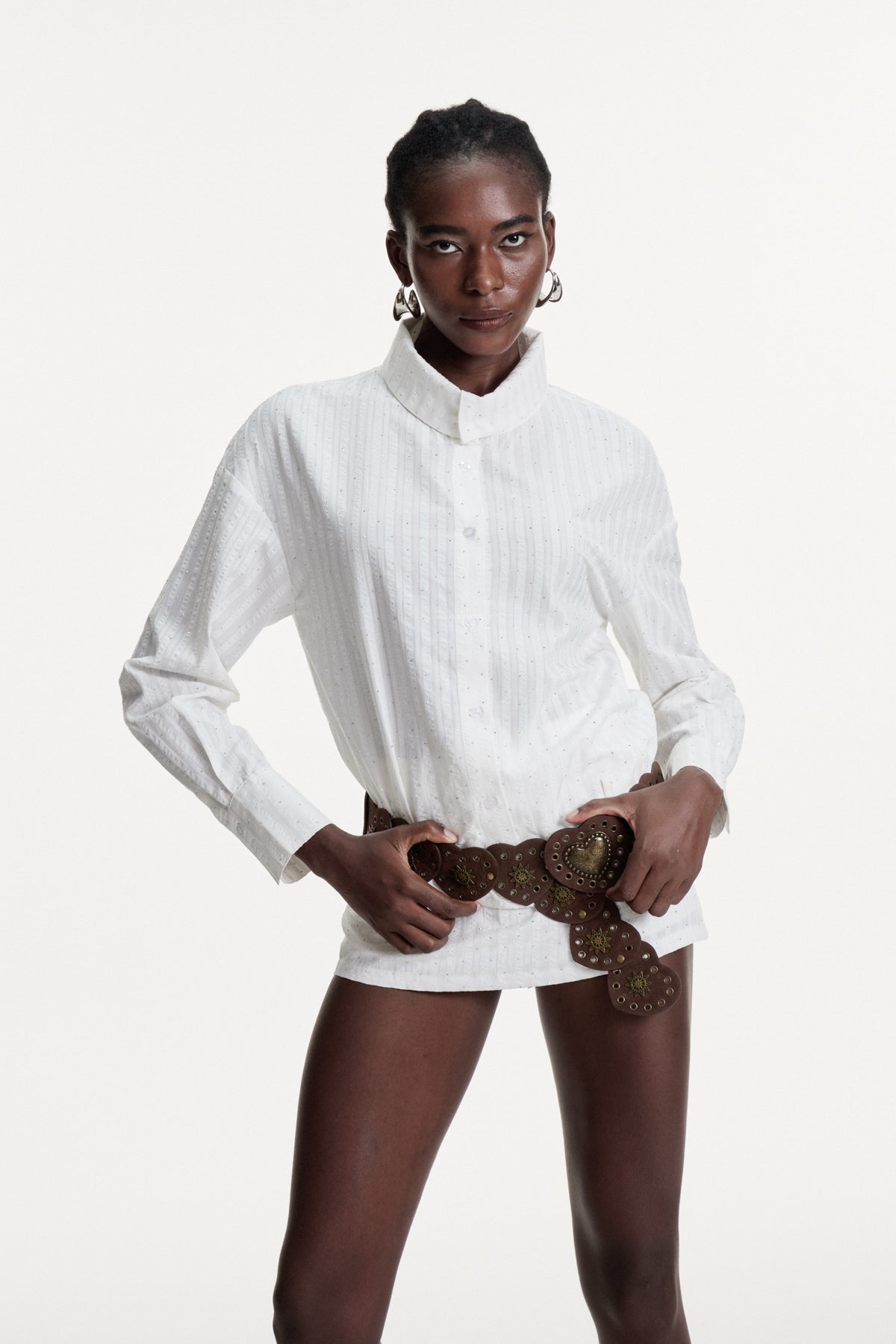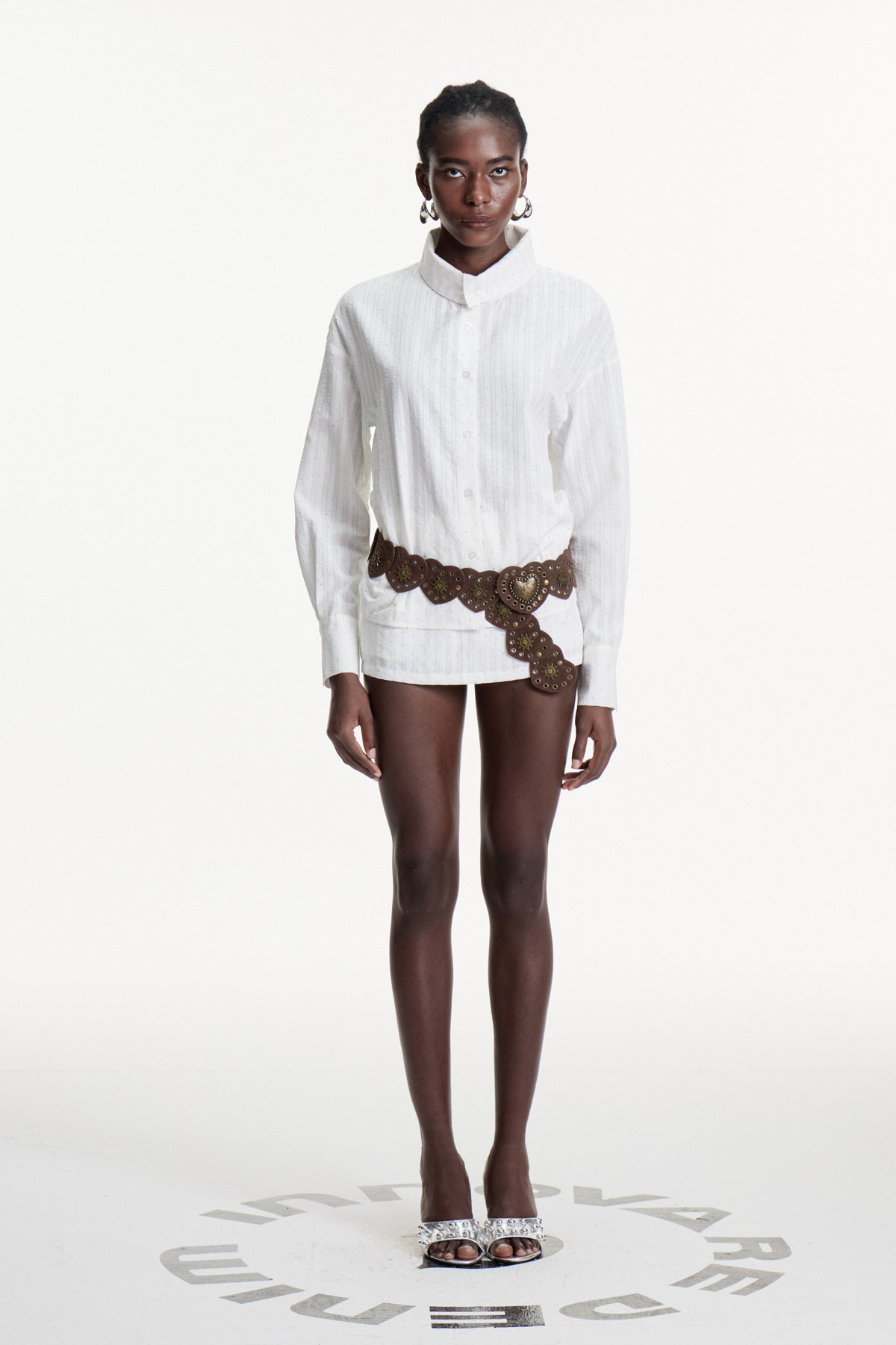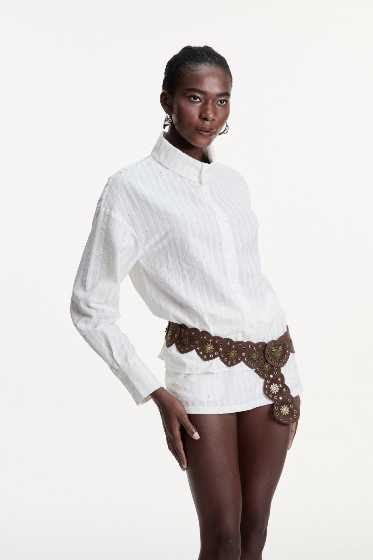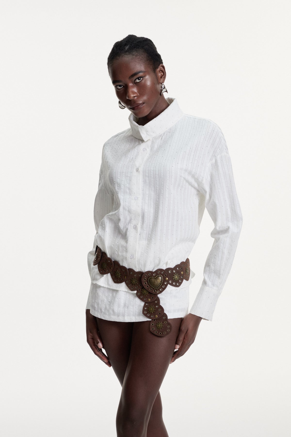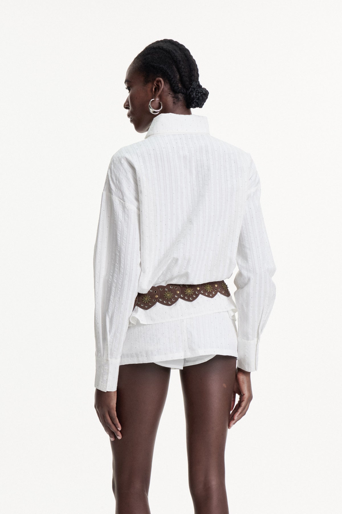 Step into sophistication with the Glamorous Stripe Rhinestone Skirt Set in White, a perfect blend of modern style and subtle glamour. This set boasts crisp stripe patterns adorned with tasteful rhinestone embellishments, offering a refined silhouette suitable for both day and evening occasions. Enjoy a tailored fit for comfort and enhancement of your shape, ensuring a versatile and stylish ensemble. Please note, color variations may occur due to lighting in images. Belt not included. Elevate your wardrobe with this chic essential now!