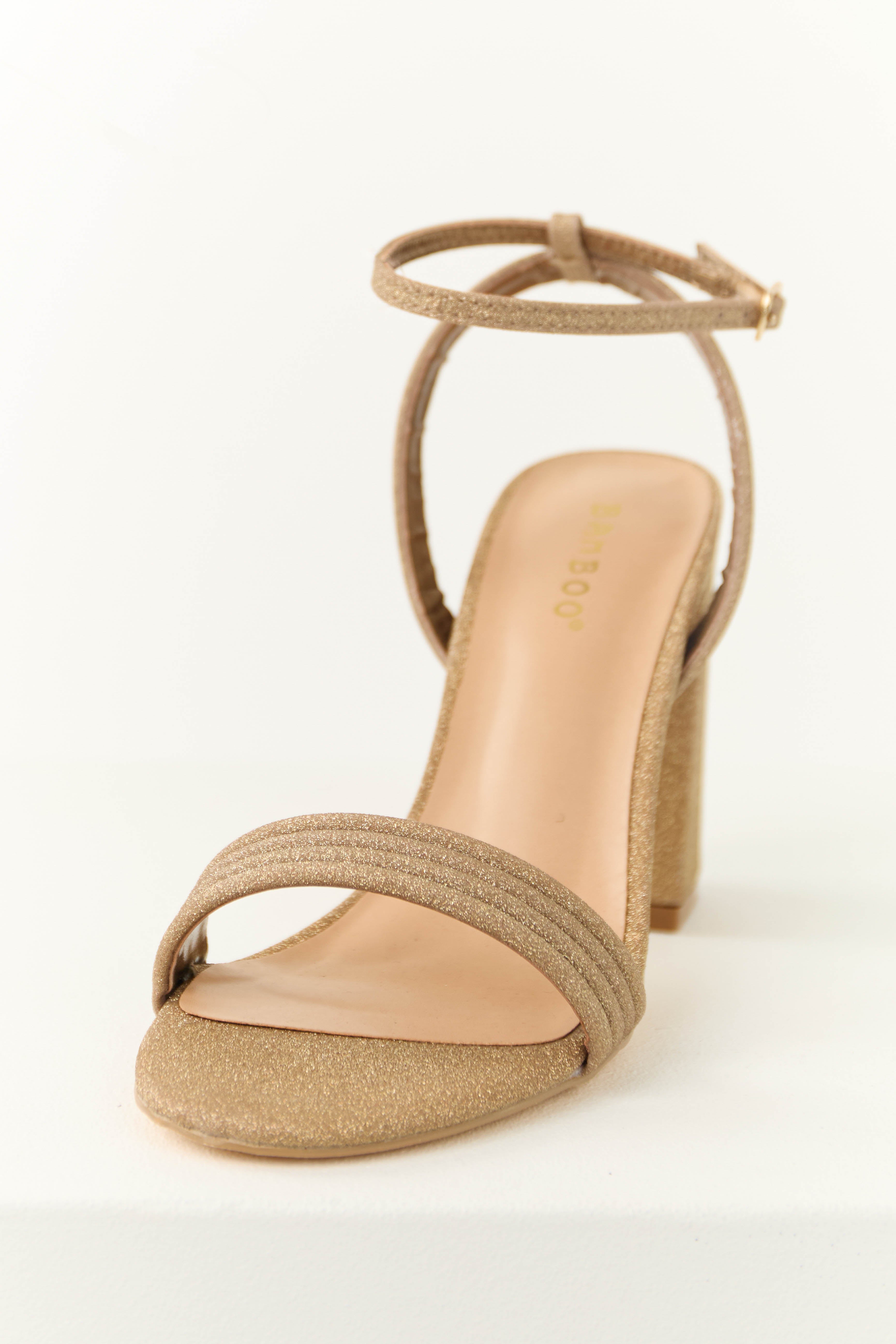 Step out in style with these glamorous Glitter Gold Block Heel Ankle Strap Shoes. Crafted from faux leather, they feature an adjustable buckle ankle strap, slightly cushioned nude insole, round toe, and open toe design. With a heel height of 4 inches, these shoes are both elegant and comfortable. The shaft measures 4 inches, while the circumference is 8.5 inches. Imported and available in various sizes, these shoes combine fashion and functionality effortlessly.