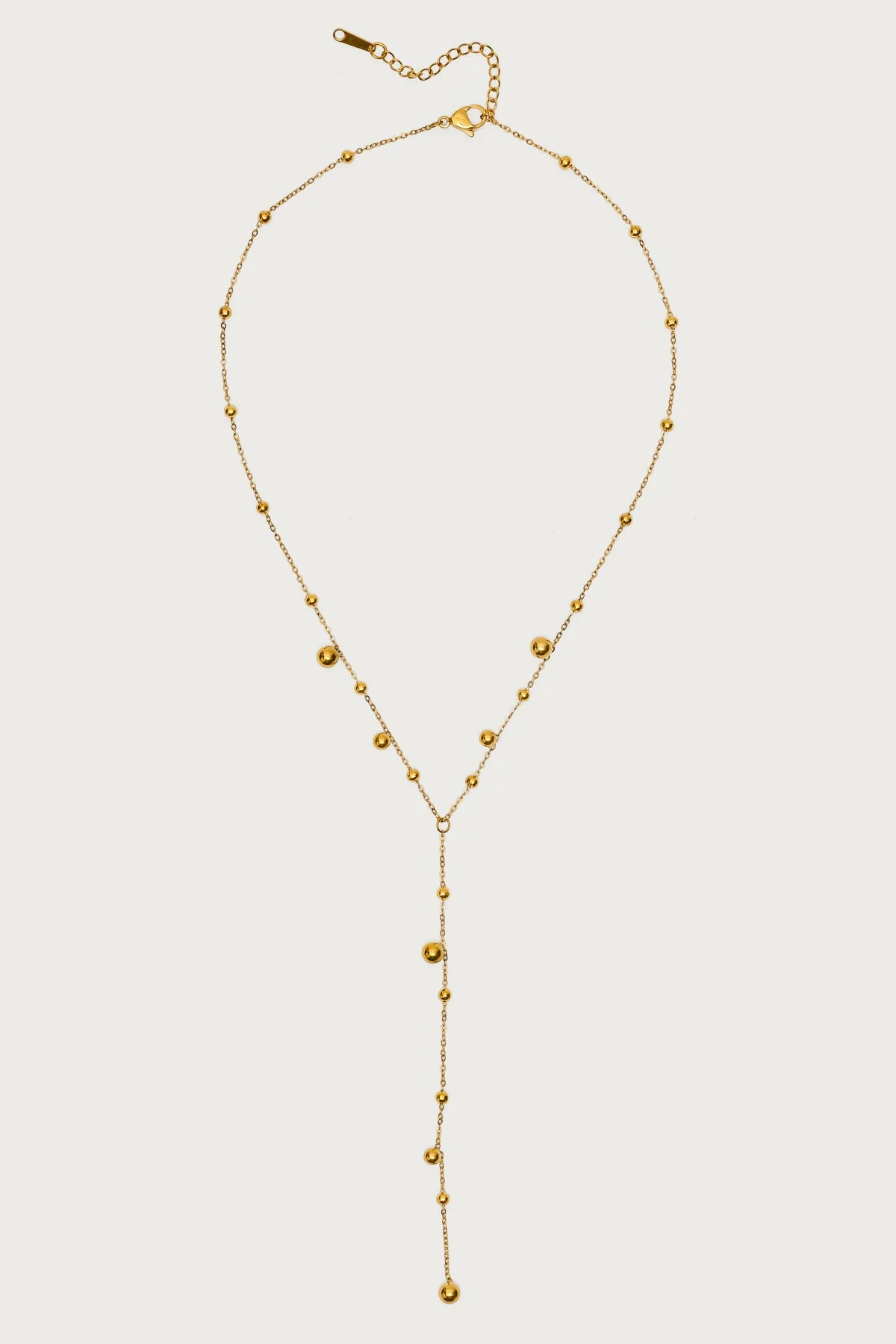 Elevate your style with our exquisite Gold Beaded Cascading Chain Necklace. Made from high-quality materials, this stunning piece features intricate bead detailing on a gold tone metal chain. Add a touch of elegance to any outfit with this timeless accessory. Measurements (In): Length 15.3. Item care: To maintain its beauty, avoid direct contact with perfume, soap, or creams. Explore our collection to find the perfect jewelry pieces to complement your unique look.