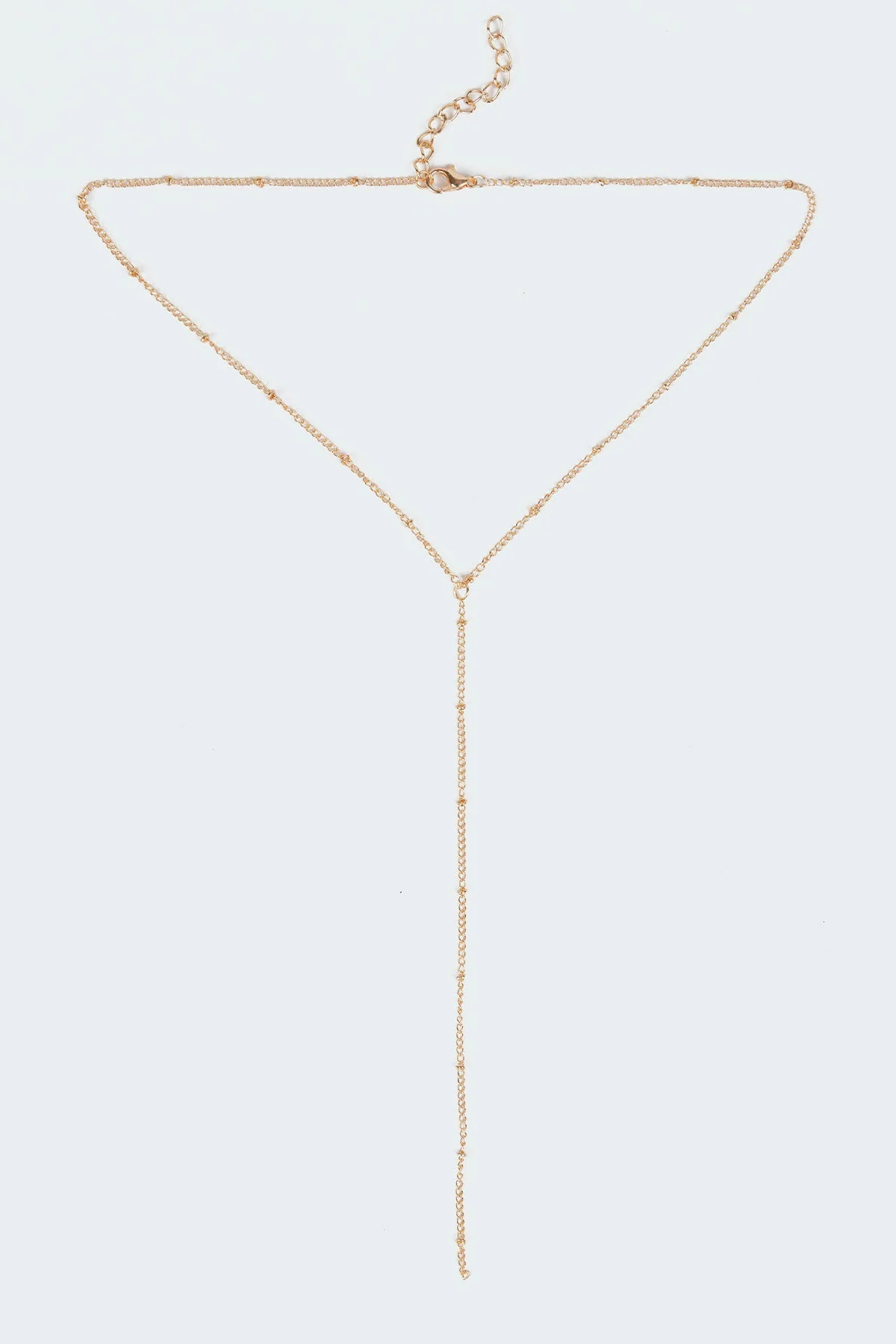 Indulge in luxury with our exquisite Gold Cascading Chain Necklace. This stunning jewelry piece features a delicate chain with tiny beaded detailing, crafted from high-quality gold-tone metal. Add a touch of glamour to any outfit effortlessly. Measurements (Inches): Length 18.7. To maintain its beauty, avoid direct contact with perfume, soap, or creams, ensuring long-lasting shine and elegance.