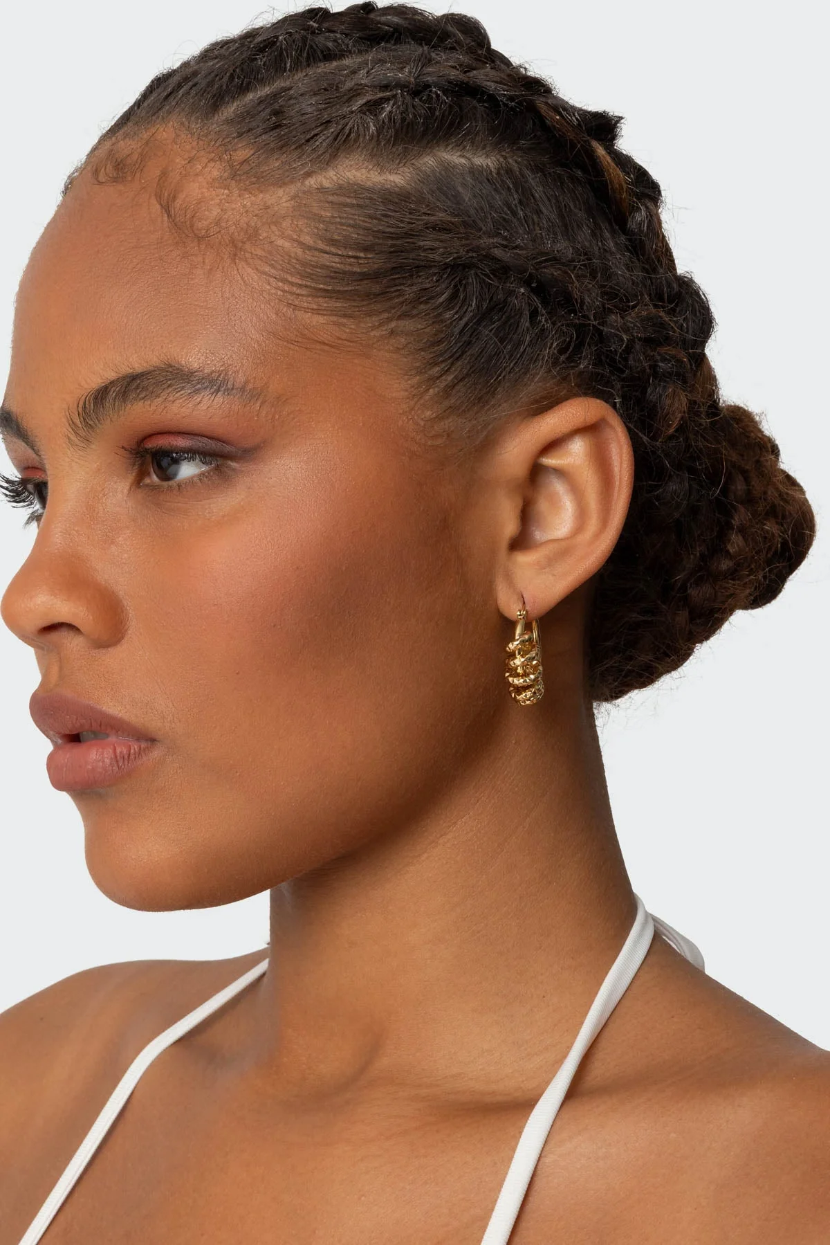 Discover timeless elegance with our Gold Coil Hoop Earrings. Crafted from gold tone metal, these mini hoop earrings measure 1 inch in length. Elevate your style effortlessly with this versatile accessory. Take care by avoiding direct contact with perfume, soap, or creams. Indulge in luxury with these exquisite earrings.