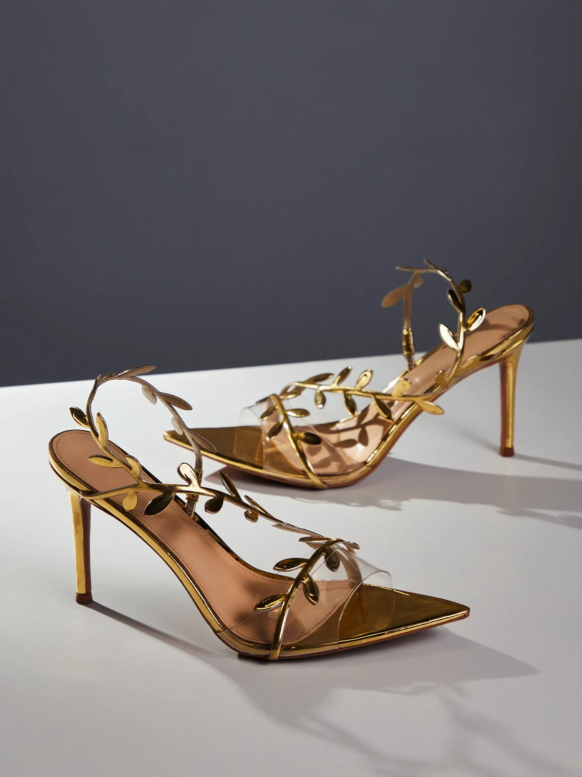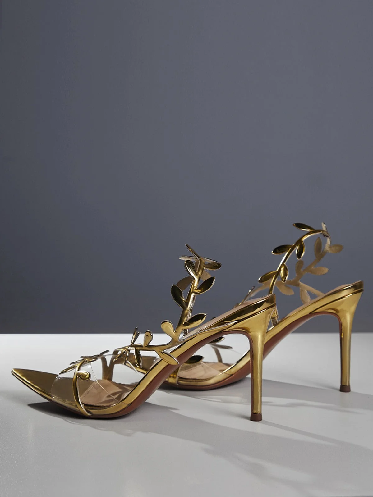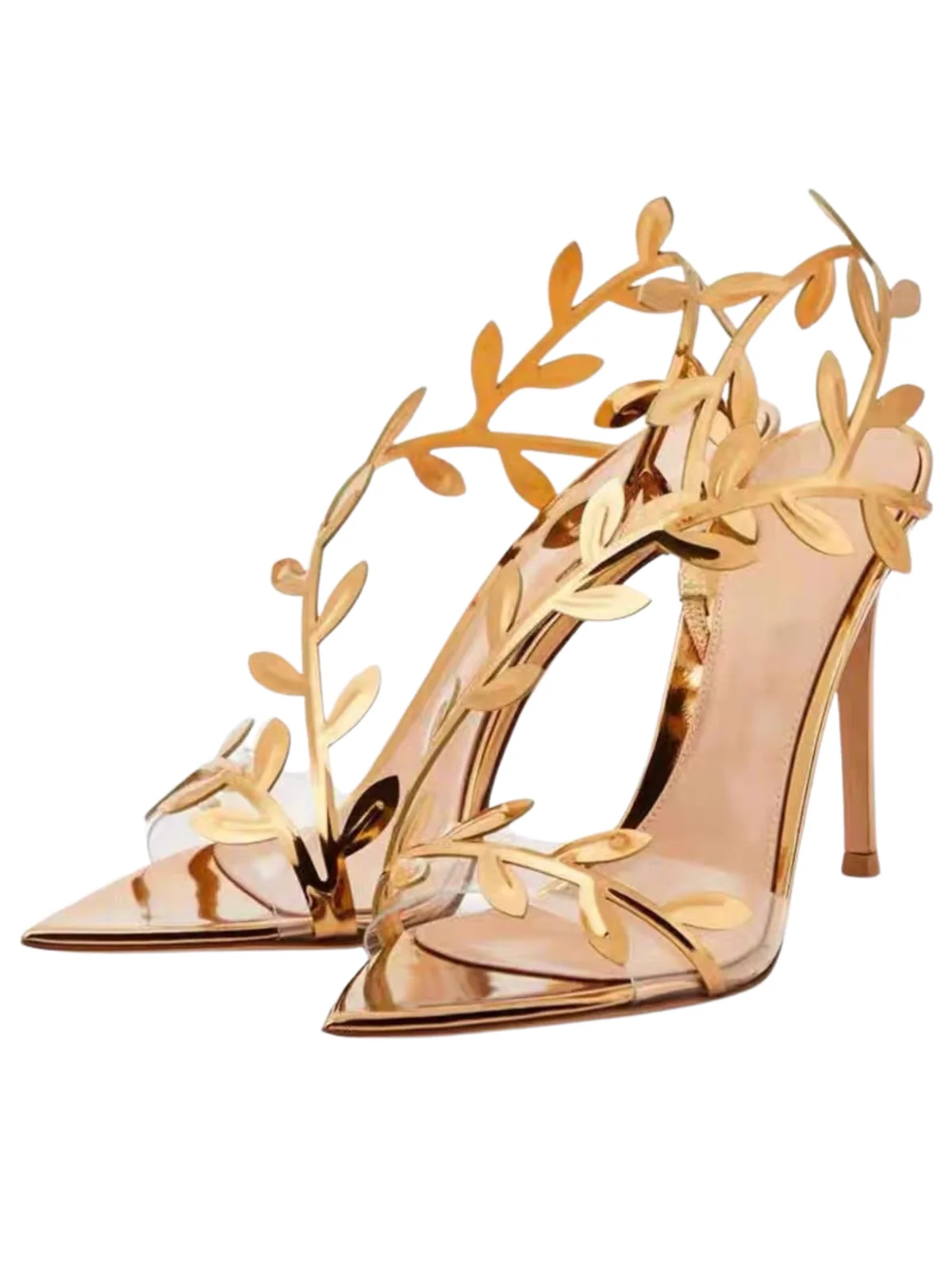 Elevate your style with confidence in these stunning Gold Leafy Stiletto Heel Sandals for women. Experience incredible comfort and empowerment all day long. These made-to-order sandals ship within 7-15 business days. Dont miss out!