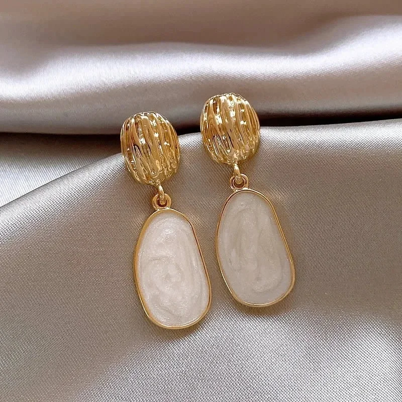 Enhance your style with the timeless elegance of Gold Pearl Dangle Earrings. The luminous pearls and sleek oval shape provide a refined accent suitable for any occasion. These lightweight earrings ensure all-day comfort. Elevate your jewelry collection with these classic pieces that measure L – 3.7cm, W – 1.3cm, Weight – 8g. Discover fresh outfit ideas on Instagram @mermaidway.