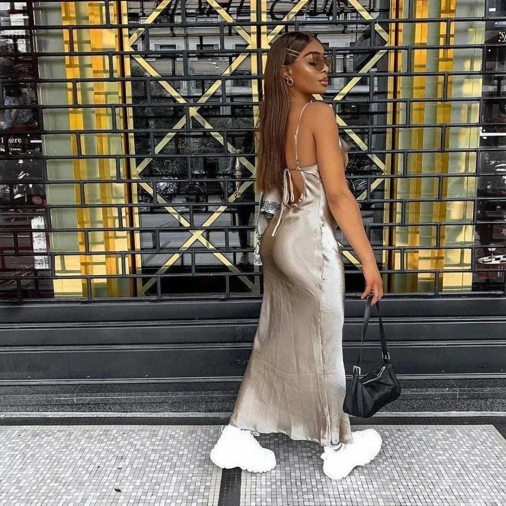 Indulge in luxury with the Gold Satin Cowl Neck Maxi Dress. Crafted in lustrous gold satin, this gown emanates sophistication and opulence. The flattering cowl neckline exudes timeless charm, while the adjustable straps ensure a customized fit. Enhance your allure with the graceful side slit that allows for effortless movement. Perfect for glamorous red-carpet events, formal soirées, and festive occasions where you deserve to shine like gold under the spotlight.