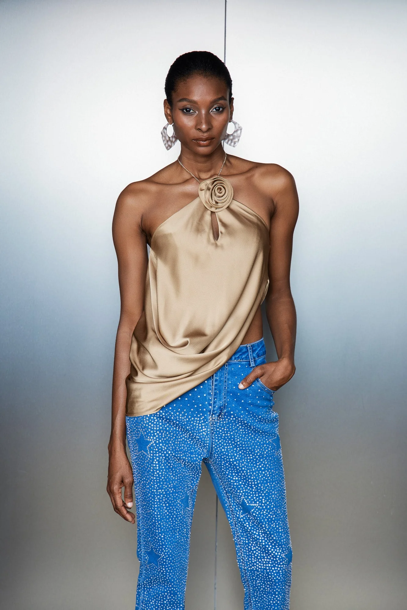 Elevate your wardrobe with the luxurious Gold Satin Ruched Top. Crafted from smooth satin fabric, this top features delicate floral ruching that enhances its elegant silhouette. The rich gold hue adds a touch of glamour, perfect for both daywear and evening occasions. Its refined design ensures a flattering fit, comfort, and timeless style. This top is non-stretch and can be gently machine washed. Please note, color may vary due to lighting.
