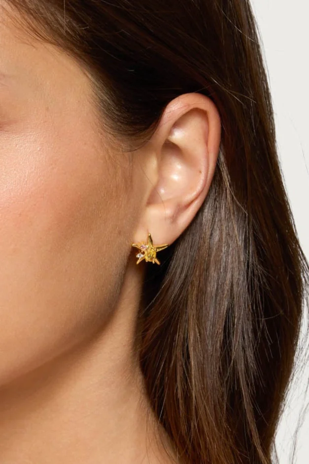 Indulge in the celestial beauty with our stunning Gold Sea Star Stud Earrings. Crafted with precision in gold tone metal, these earrings feature a delicately designed sea star motif. Elevate your style effortlessly with these exquisite accessories. Measurements: Length 0.5 inches. Care Instructions: Avoid direct contact with perfume, soap, or creams for long-lasting shine and elegance.