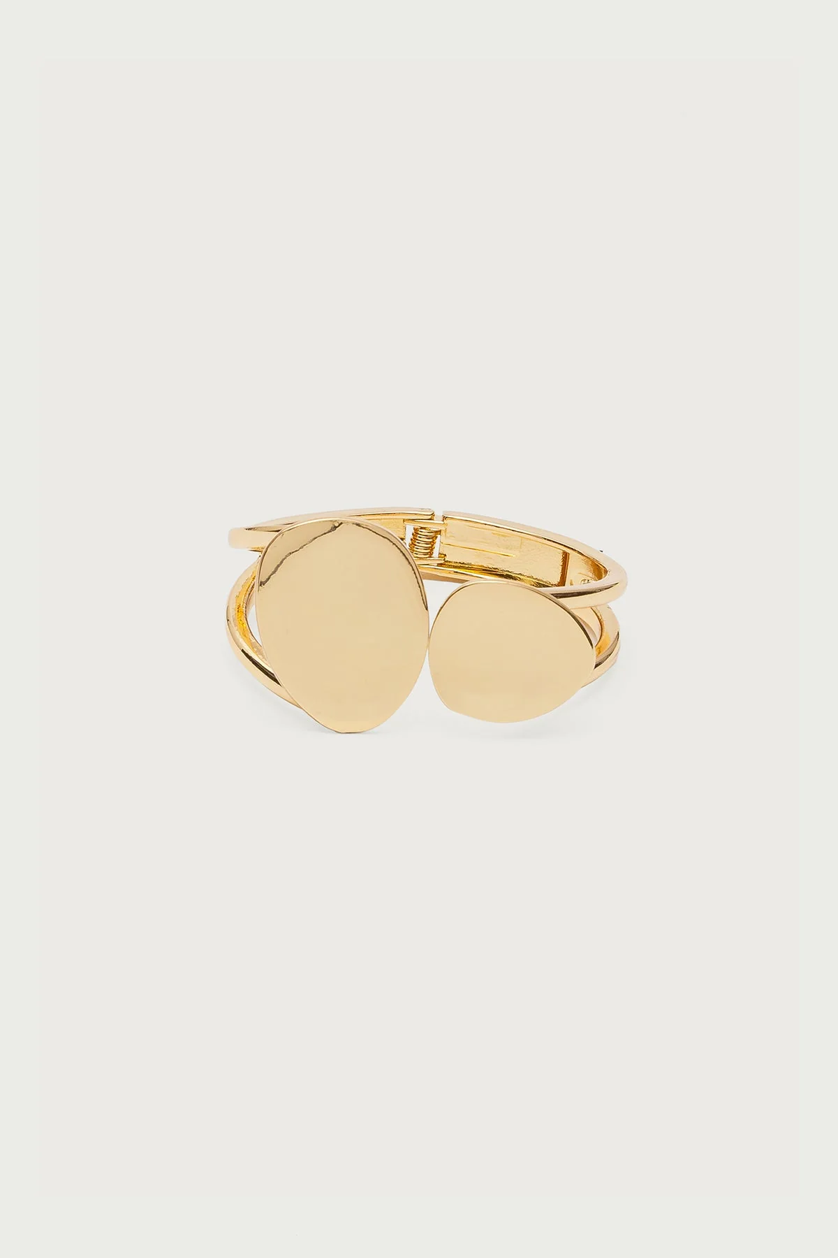 Elevate your wrist with our stunning Gold Bracelet featuring an abstract design. This piece is crafted from high-quality gold tone metal and measures 2.3 inches in length. Add a touch of elegance to any outfit while following our care instructions: avoid direct contact with perfume, soap, or creams for long-lasting shine and beauty.