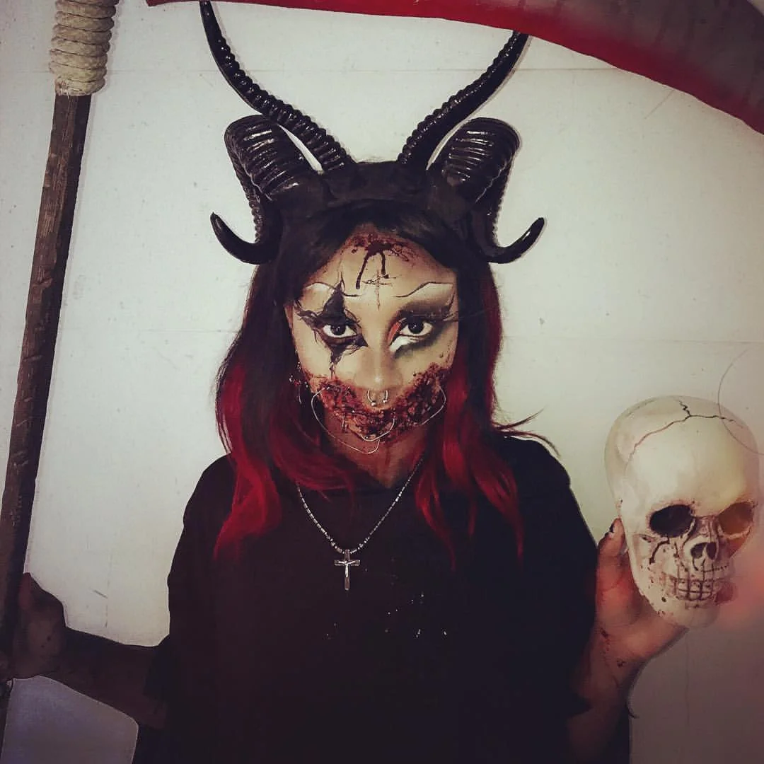 Experience the Baphomet Horns, a Gothic cosplay headband featuring two stunning sets of black horns – one long and one curly ram-style. Ideal for events, weddings, or your dark rituals. Each horn measures 20cm/8on one side for an otherworldly look.