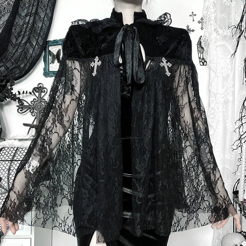 Discover our exquisite Limited Edition Gothic Mesh Cloak in Black! This showstopper is crafted from a premium blend of Lace and Polyester to provide you with exceptional quality. Embrace elegance with the Womens Gothic Mesh Cloak Black enriching your attire. Find your perfect fit with sizes S (68.0 in), M (70.0 in), and L (72.0 in). At Cult, we prioritize your satisfaction. Contact us anytime for a delightful shopping experience!