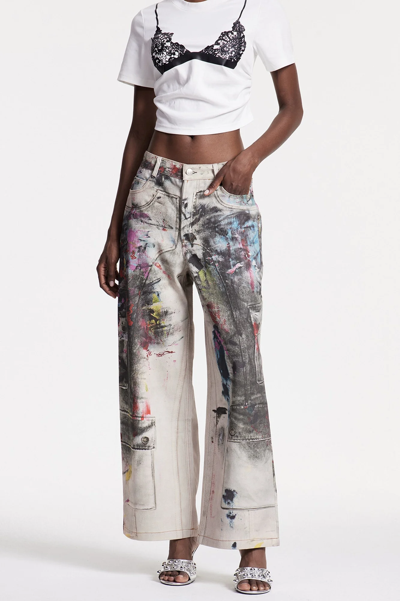 Discover the perfect blend of streetwear style and premium denim quality with our Graffiti Print Urban Denim Jeans. Boasting a distinctive graffiti-inspired design, these jeans offer a bold urban aesthetic that sets you apart. Crafted from durable, high-quality denim, they provide long-lasting comfort and shape retention. Whether you crave a fashion-forward look or unmatched durability, these jeans deliver in both style and resilience, making them ideal for everyday wear. Please note that the color may vary slightly due to lighting conditions. Gentle machine wash recommended. Available in sizes S, M, and L.