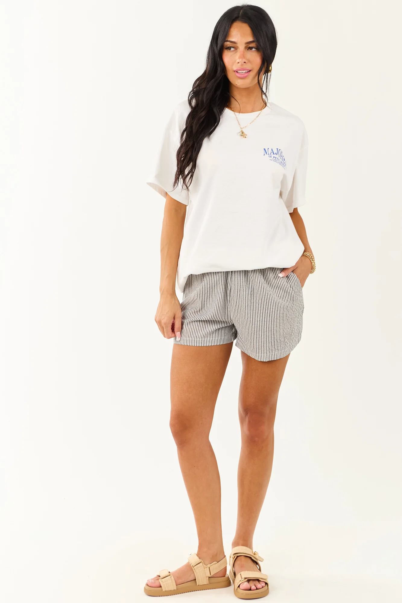 Elevate your style with theMajorcaGraphic Cotton Short Sleeve Top in Off White . This vacation-inspired top features an oversized fit with semi-stretchy lightweight cotton fabric in Sapphire, Lemon, Honey, Olive, Sage, and Black tones. Enjoy the comfort and chic look with drop shoulders and a stylish graphic design. Available in sizes S/M and L/XL, this top is a must-have for your summer wardrobe.
