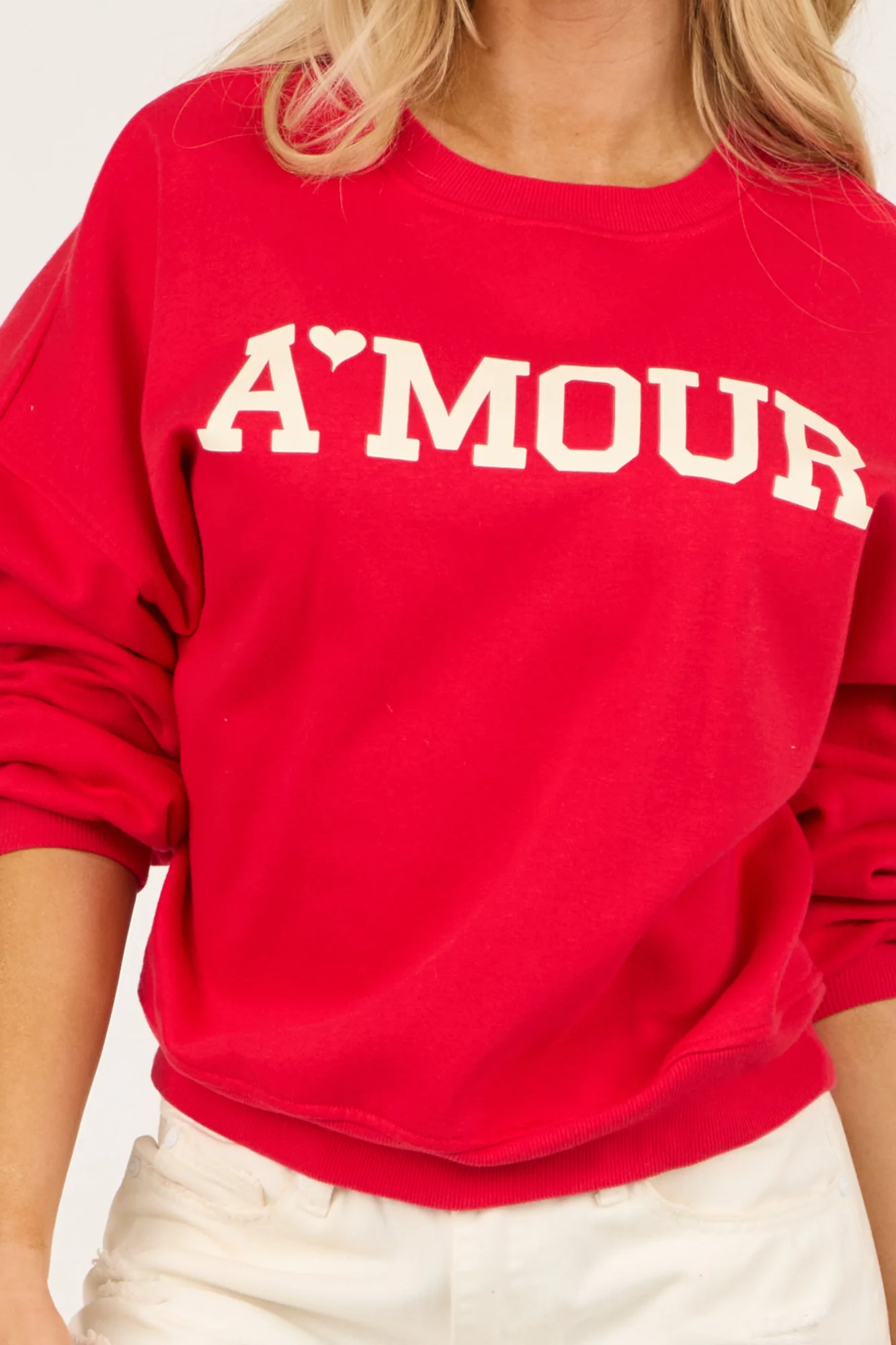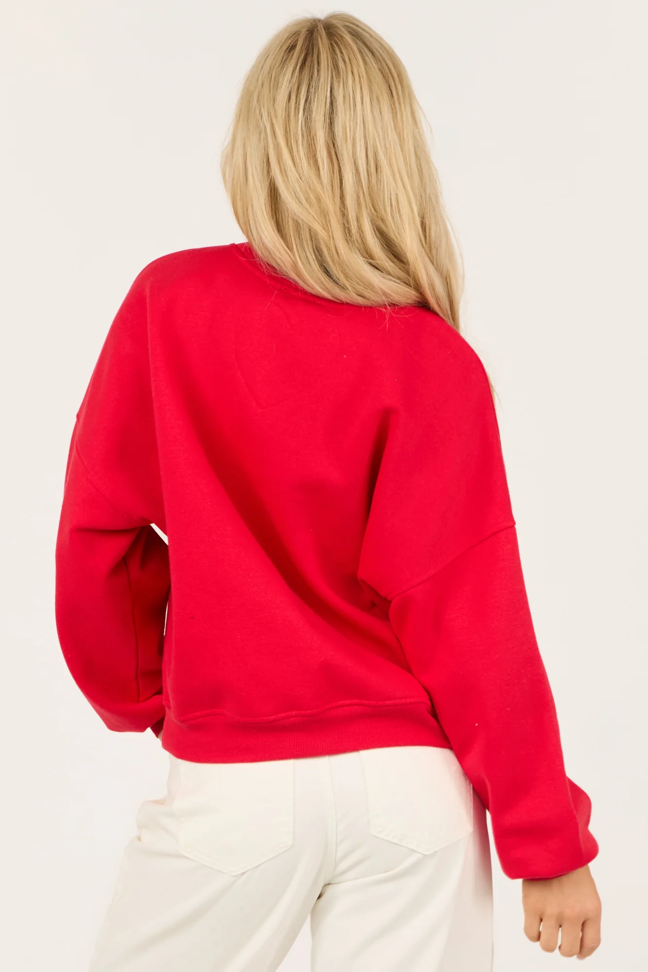 Stay cozy and stylish with our Graphic Cream Long Sleeve Sweatshirt featuring a heart stitch detail on the back. Made of a non-stretchy woven blend and banded ribbed trim for a comfortable fit. This sweatshirt is perfect for casual outings or lounging. Care instructions: Hand wash cold, reshape, lay flat to dry. Cool iron if needed.