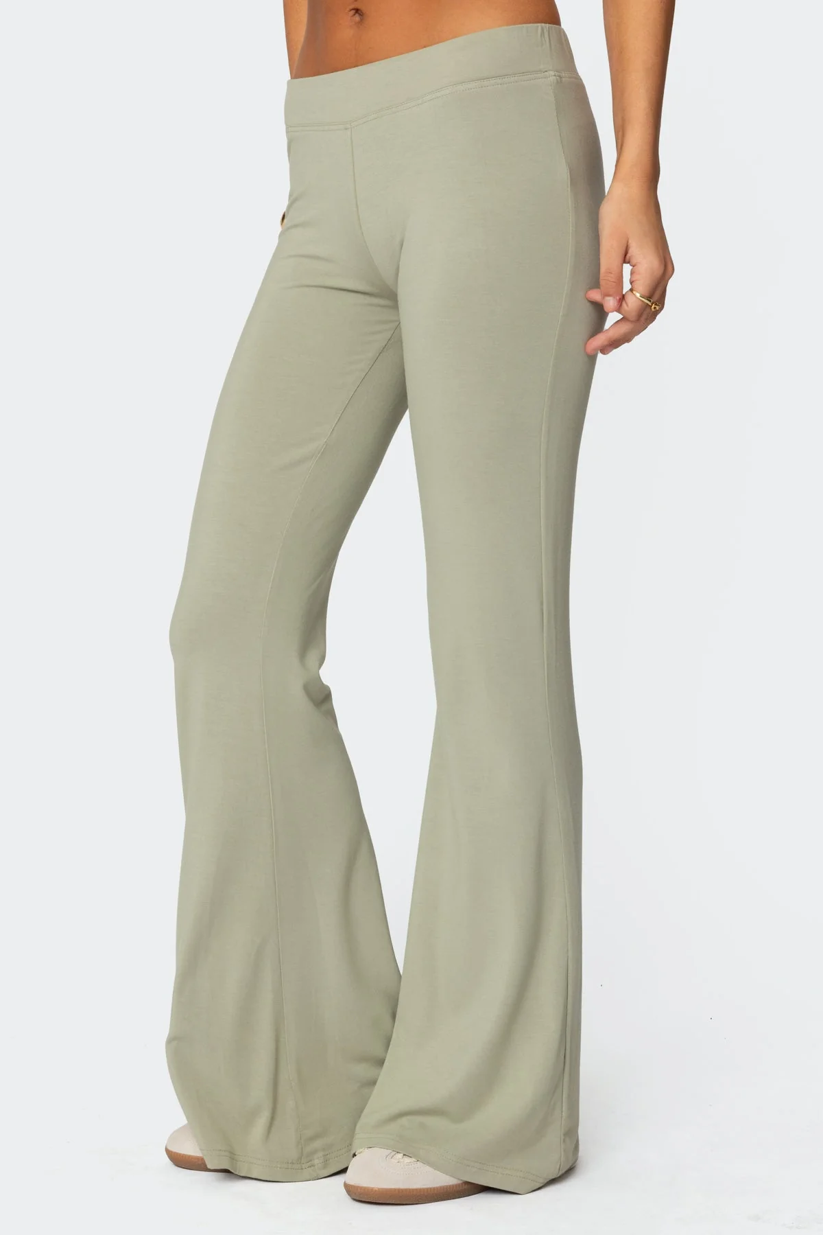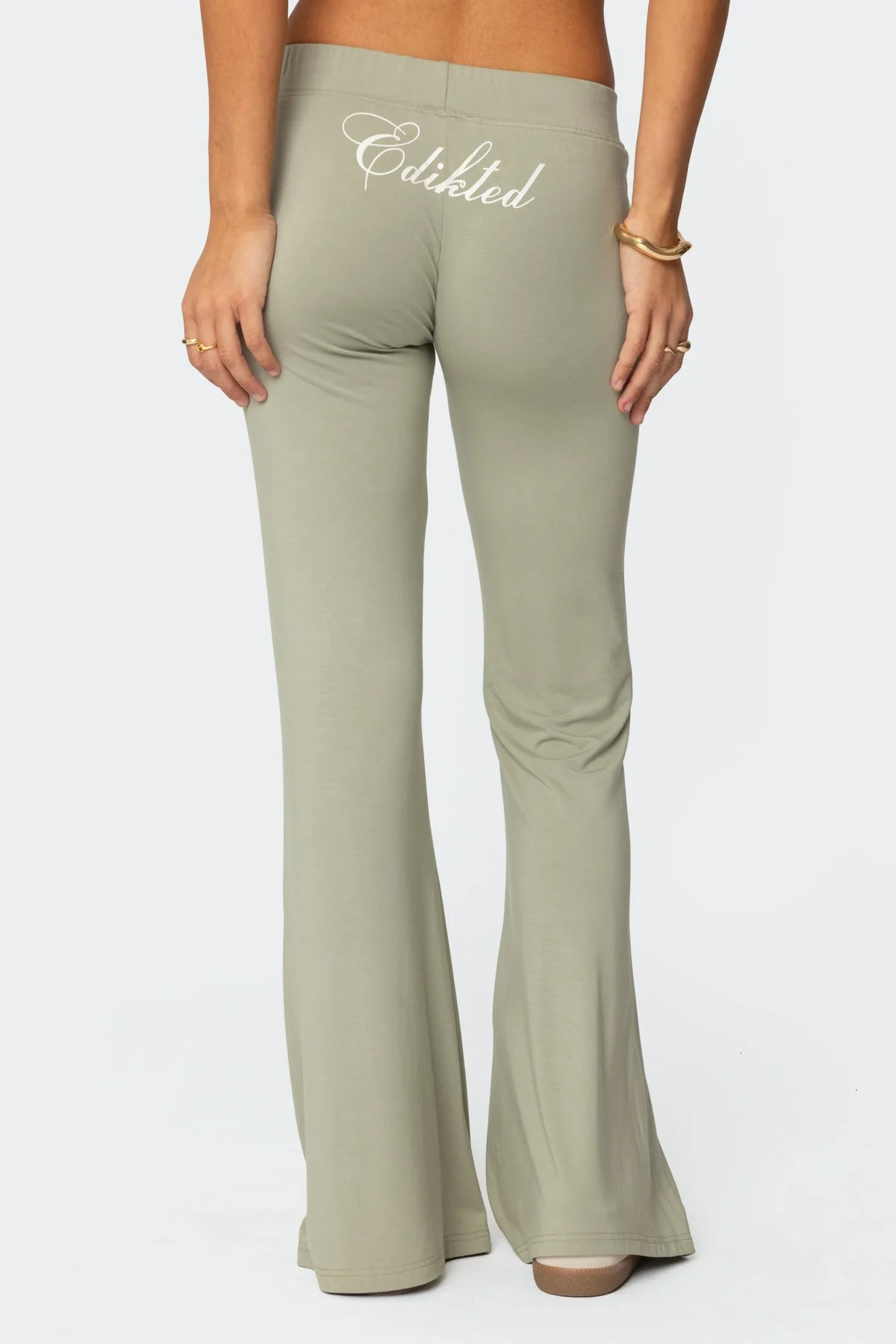 Experience unmatched comfort and style with our olive Graphic Print Flared Lounge Pants. This matching set is crafted from a blend of Rayon and Spandex for a perfect fit. Whether youre relaxing at home or stepping out, these pants are a versatile addition to your wardrobe. The model wears size S and is 58 tall. Care instructions: Machine wash cold, do not bleach, do not tumble dry, iron low heat.