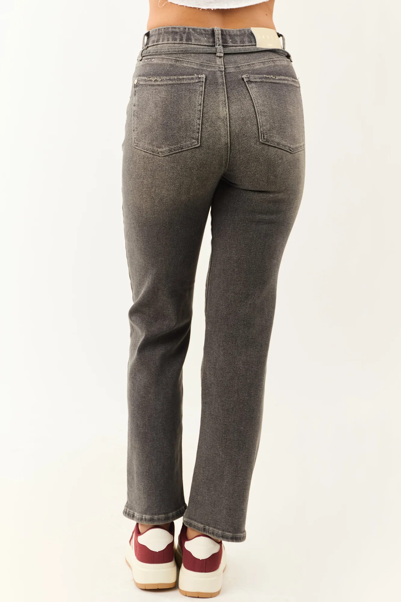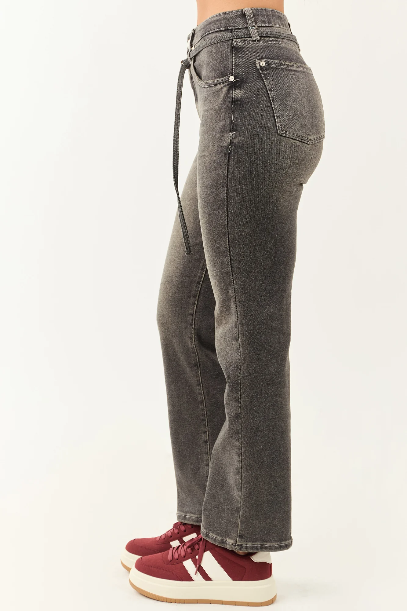 Discover the ultimate comfort and style with our Graphite Tummy Control High Rise Straight Jeans. These jeans feature a flattering tummy control fit, detachable waist tie, and stretchy denim fabric for a perfect, fitted look. With a high rise design, zipper fly, light distressing, and 5 practical pockets, these jeans are both fashionable and functional. Made of 63% Cotton, 31% Polyester, 4% Viscose, and 2% Spandex, these imported jeans are a must-have addition to your wardrobe. Available in various waist and hip sizes to ensure a perfect fit. Look and feel your best effortlessly!