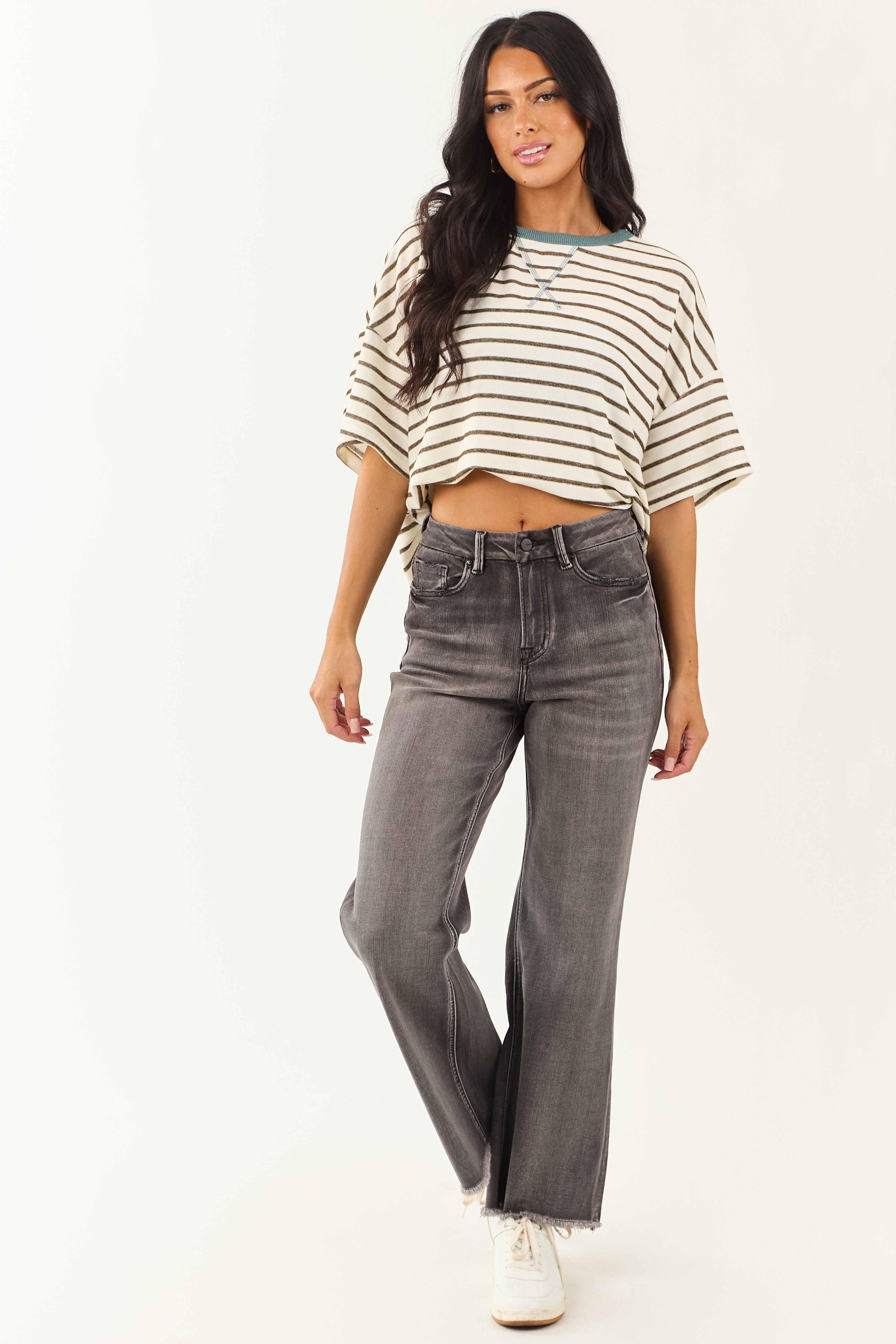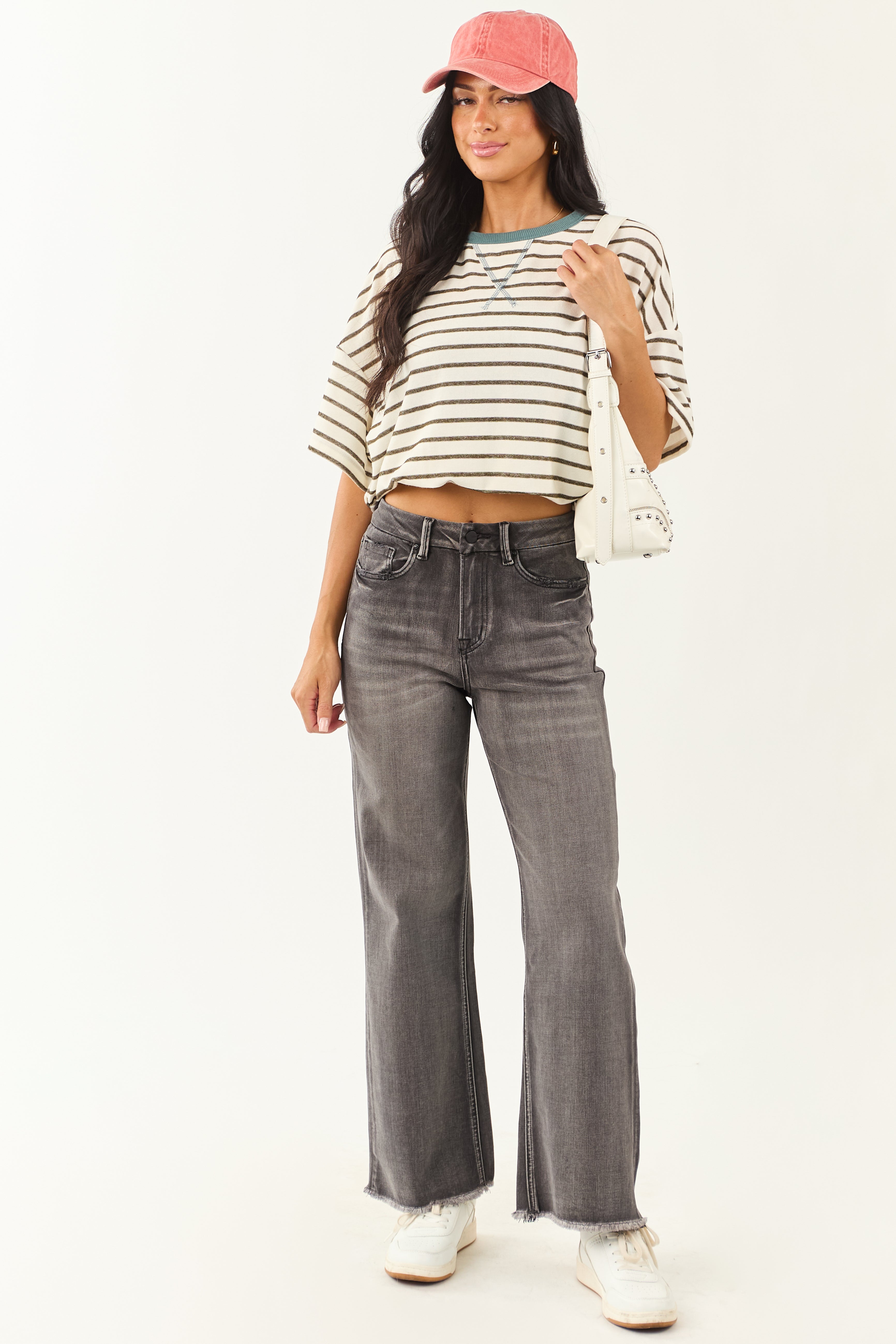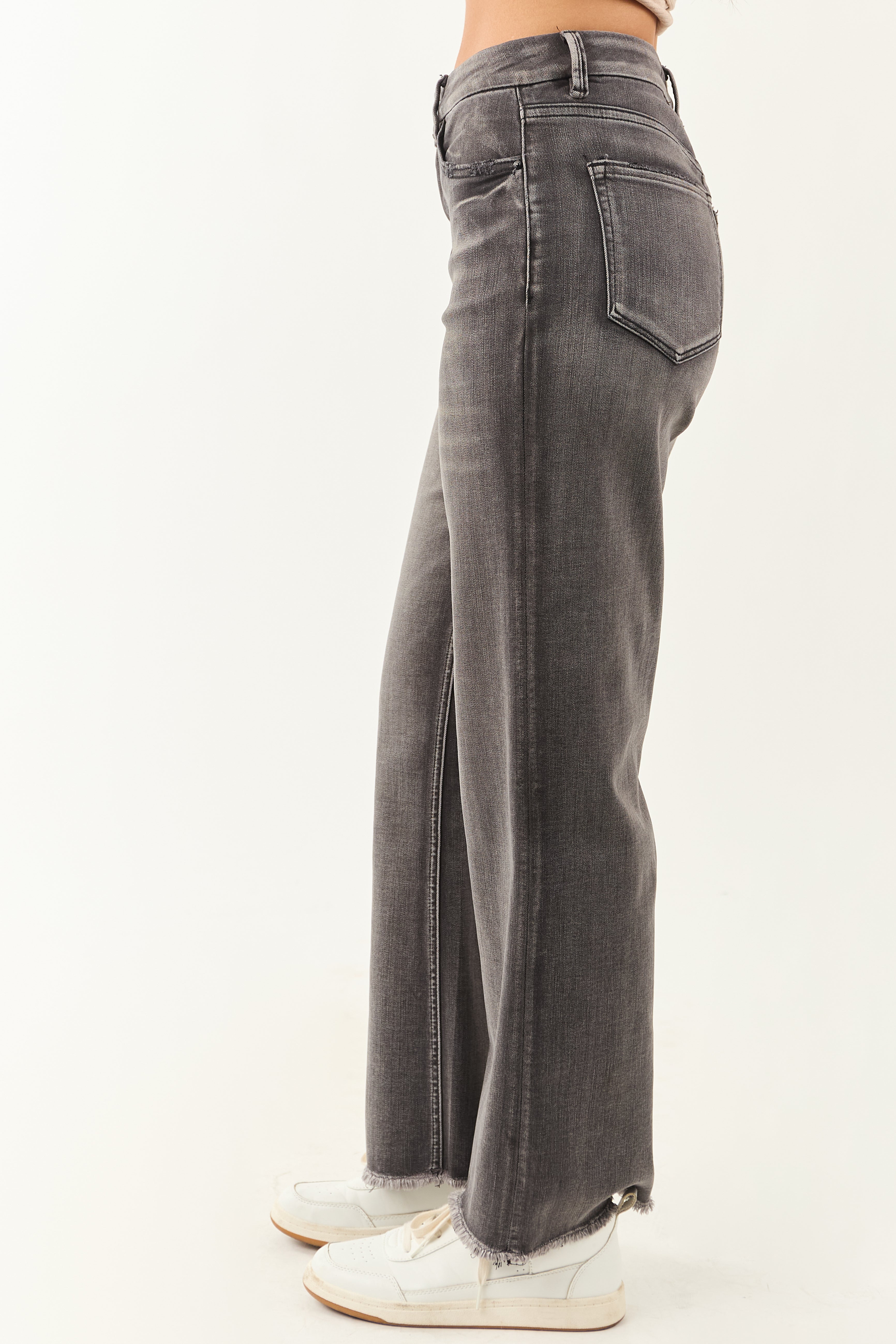 Experience comfort and style with our Graphite Wide Leg Stretchy Denim Jeans . These versatile jeans feature a high-rise fit, stretchy denim fabric, raw frayed hem, and five functional pockets. Perfect for work or weekend wear. With a forgiving waistband and light distressing, these jeans offer a modern edge and true size fit. Crafted from 32% Cotton, 34% Viscose Rayon, 32% Polyester, and 2% Spandex for ultimate comfort. Zipper fly with button closure. Inseam: 29 inches. Imported.