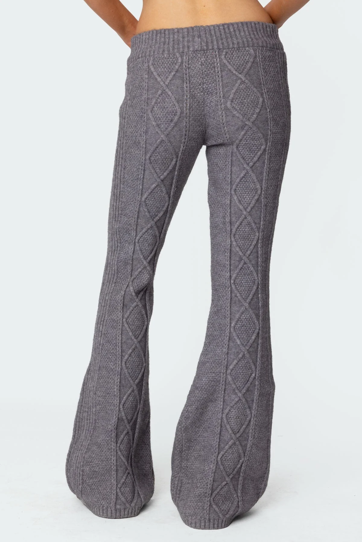 Upgrade your wardrobe with our stylish Gray Cable Knit Flared Pants. This flared fit pair, made of polyester and rayon blend cable knit fabric, ensures both comfort and style. Designed in versatile gray melange color, this matching set adds a trendy appeal to your look. Machine washable for easy care.