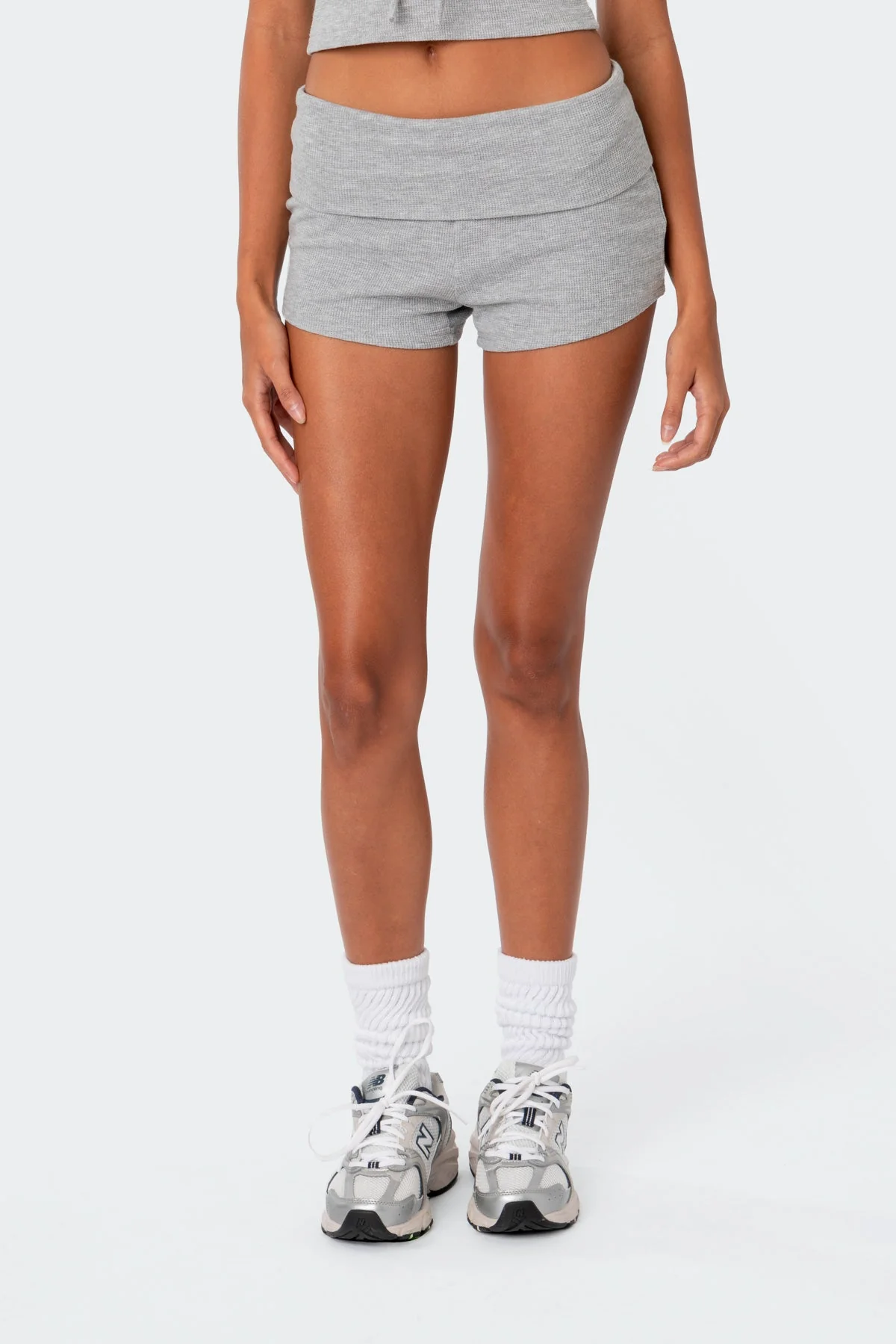 Indulge in ultimate comfort with our Gray Foldover Waffle Lounge Shorts. Crafted from a blend of Cotton, Polyester, and Spandex, these micro shorts feature a low-rise waist and a fold-over waistband for a perfect fit. The waffle fabric adds a touch of texture, making them a must-have for your loungewear collection. Complete the look with the matching top for a cozy ensemble. Ideal for relaxing at home or running quick errands. Available in sizes XS to XL.