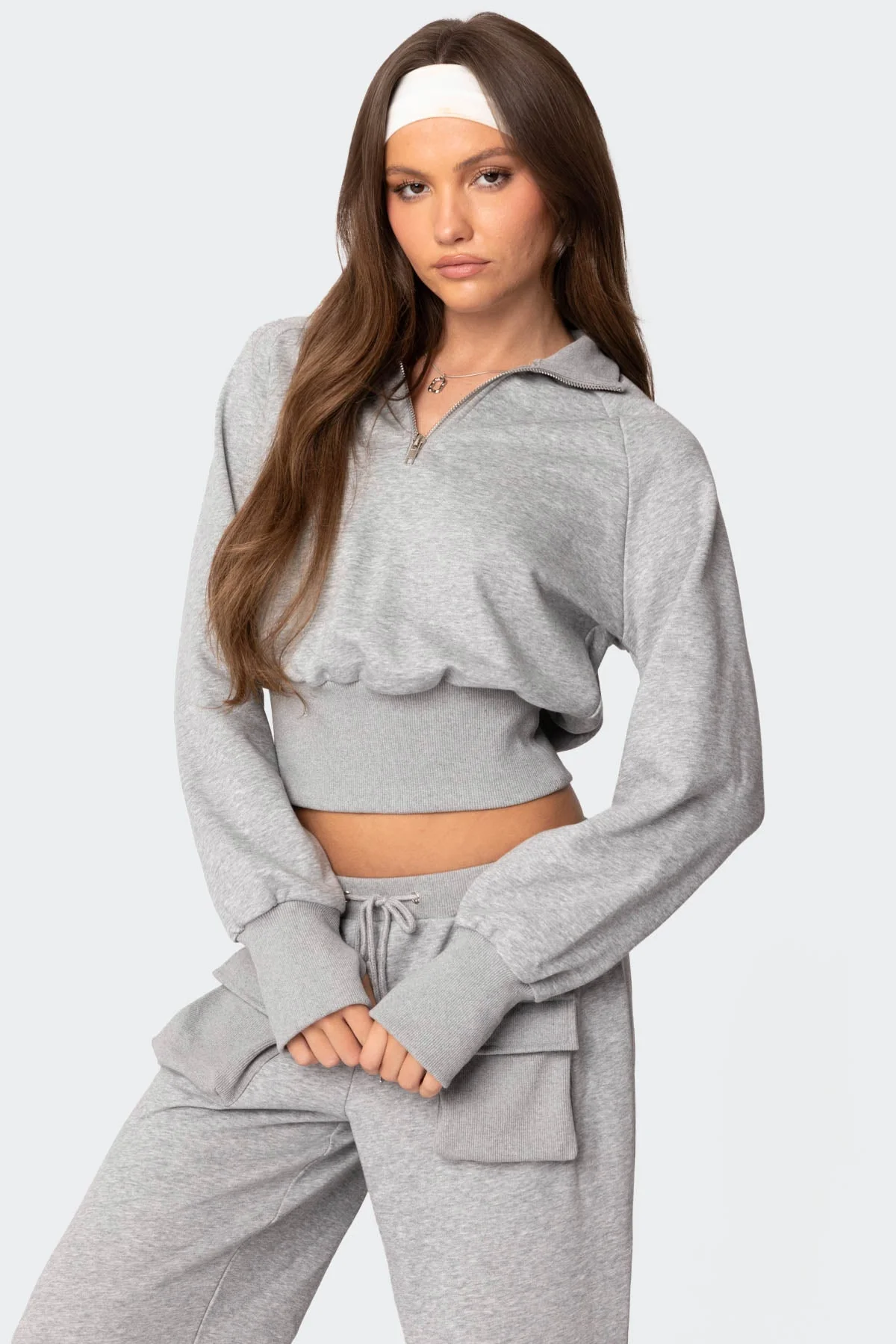 Stay warm and stylish in our Gray French Terry Quarter Zip Sweatshirt with raglan style, extra-wide hem, thumbhole rib cuff, and matching set option. Made of comfortable French terry fabric (cotton, polyester blend), this sweatshirt is versatile for any occasion. Model is wearing size S, standing at 58″ tall. Care instructions: Machine wash up to 30ºC, do not bleach, tumble dry low, iron at a maximum of 110ºC, and avoid dry cleaning.