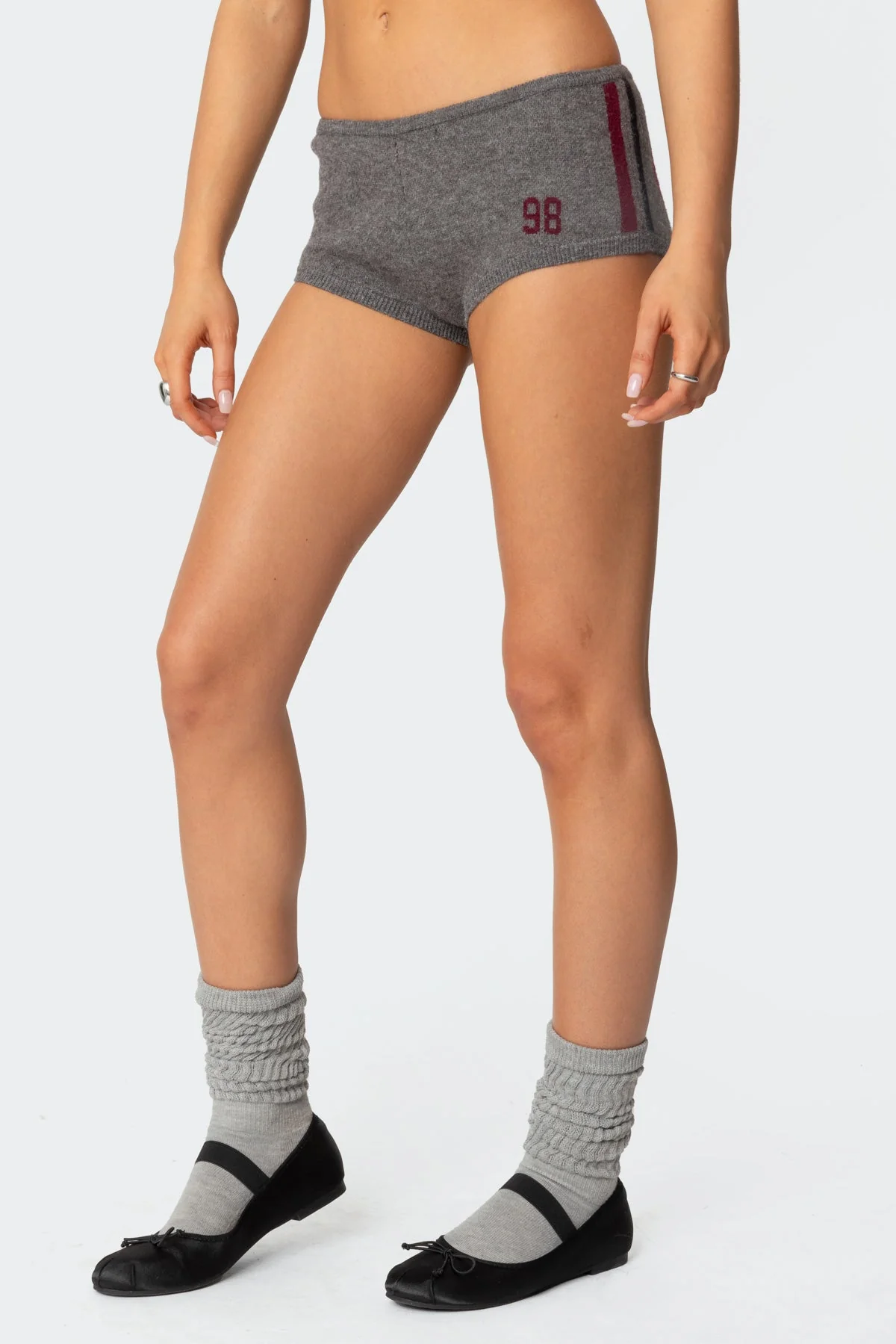 Indulge in ultimate comfort with our Gray Knit Heart Micro Shorts Set. These low-rise knit shorts feature charming heart graphics, a matching set with top, made of acrylic, nylon, and polyester blend. Machine-washable for easy care. Available in size XS to XL.