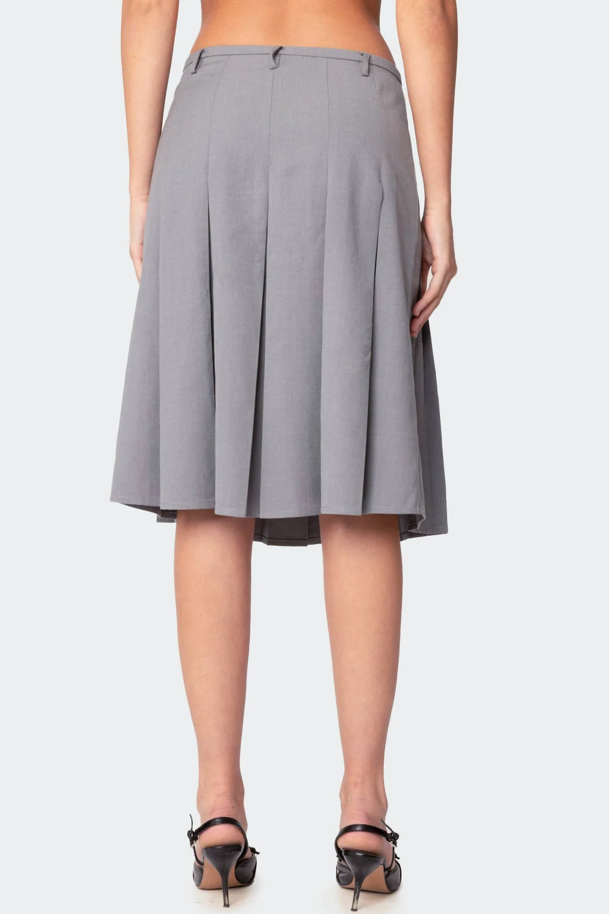 Upgrade your wardrobe with our elegant Gray Pleated Midi Skirt. Featuring a stylish pleated design, side slit, and belt loops for a chic look. Made of premium polyester and cotton blend, this skirt is a perfect addition to any fashion-forward womans collection. Complete the look with the matching set. Ideal for machine wash at max 30ºC. Elevate your style effortlessly!