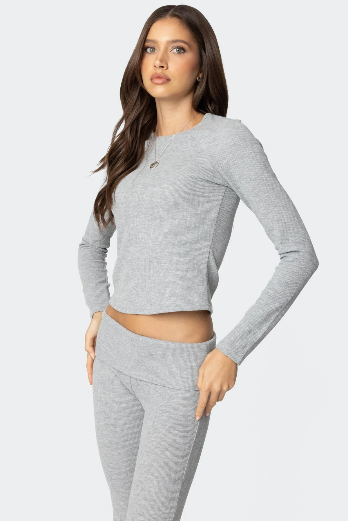 Upgrade your loungewear collection with our Gray Waffle Knit Long Sleeve Top. Crafted from a cozy blend of Rayon, Polyester, Nylon, and Spandex, this top features a stylish Raglan design. Mix and match with the coordinating bottom for a complete set. Machine washable for easy care. Available in sizes XS to XL. Model is 57 tall and wears size S.
