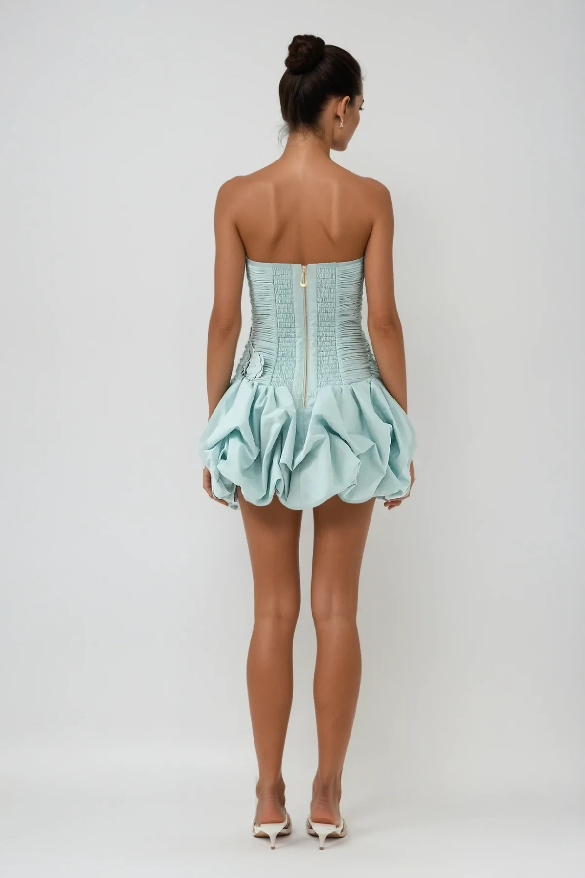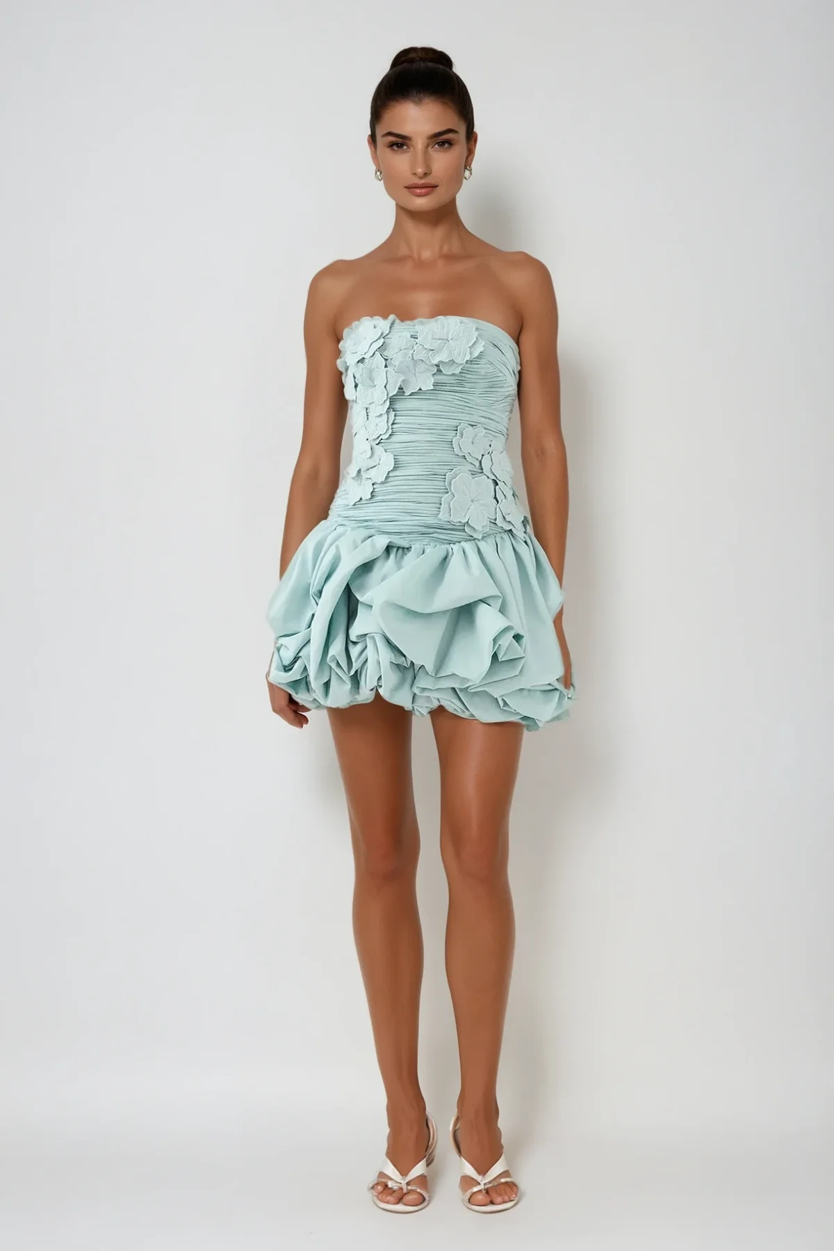 Elevate your style with our Green Floral Strapless Puffy Mini Dress. Featuring an eye-catching floral print, ruched bodice, and puffy mini skirt, this dress adds sophistication to any occasion. Made of 50% Polyester and 50% Cotton. Perfect for formal events or everyday elegance. Color may vary in images due to lighting.