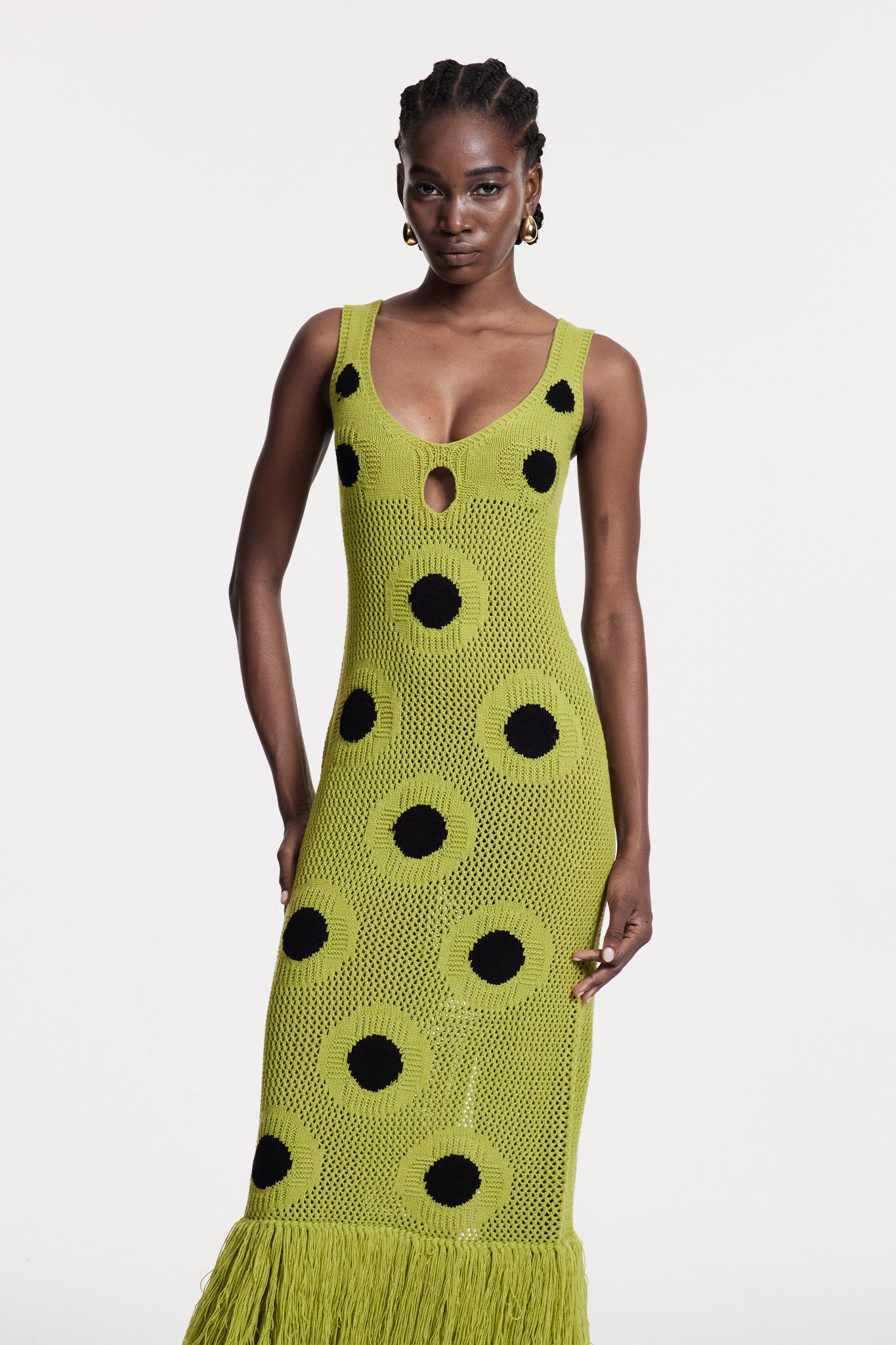 The Green Fringe Knit Maxi Dress seamlessly blends sophisticated craftsmanship with contemporary style. Constructed from soft knit fabric, it provides a comfortable fit and graceful movement. This maxi dress with fringe embellishments creates a flattering silhouette suitable for various body shapes. Perfect for casual or formal events, this dress offers unparalleled versatility with a chic, fashion-forward appeal. Experience a slight stretch for added comfort. Care Instructions: Machine wash gently. Please note, actual color may vary slightly due to lighting conditions during photography sessions.