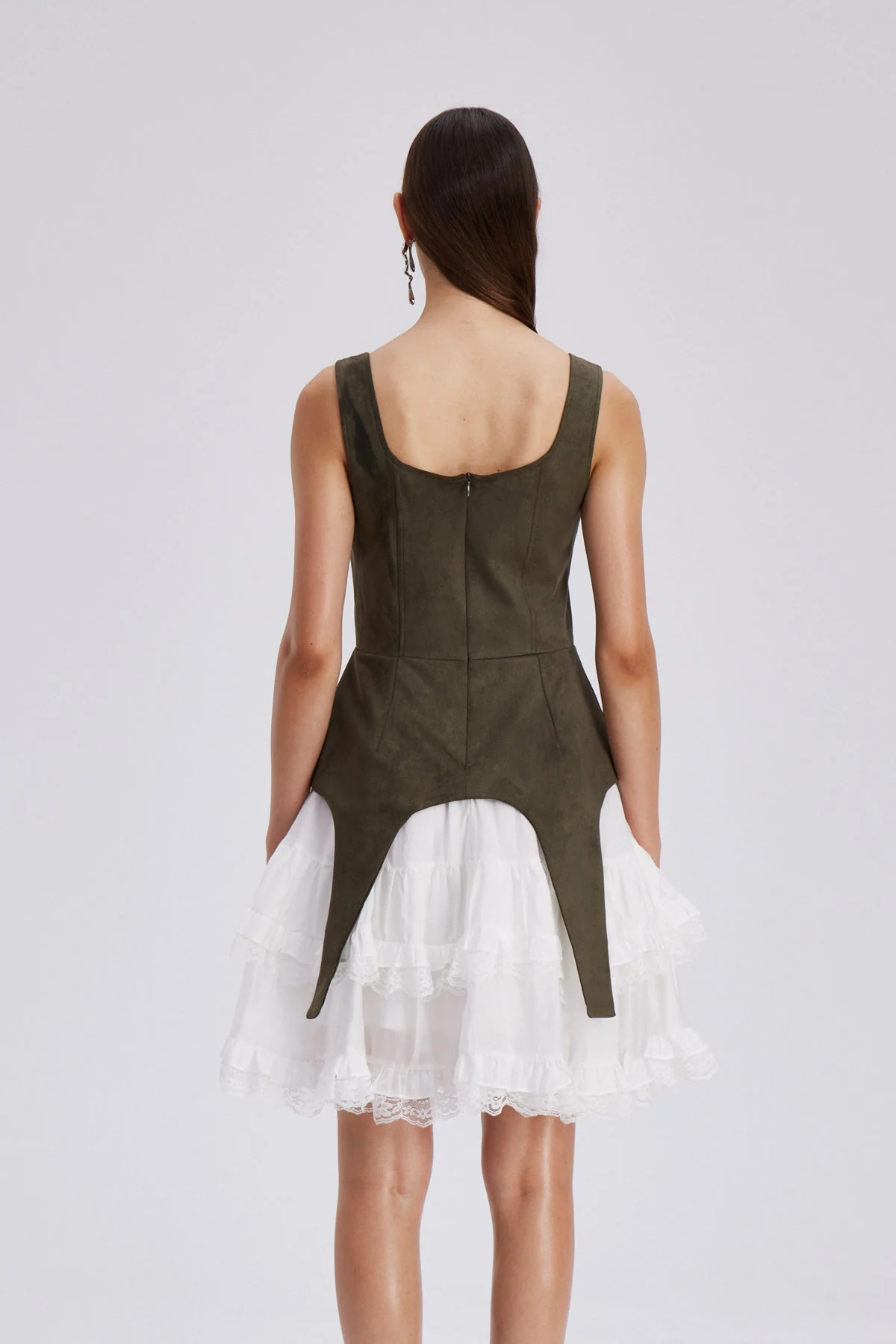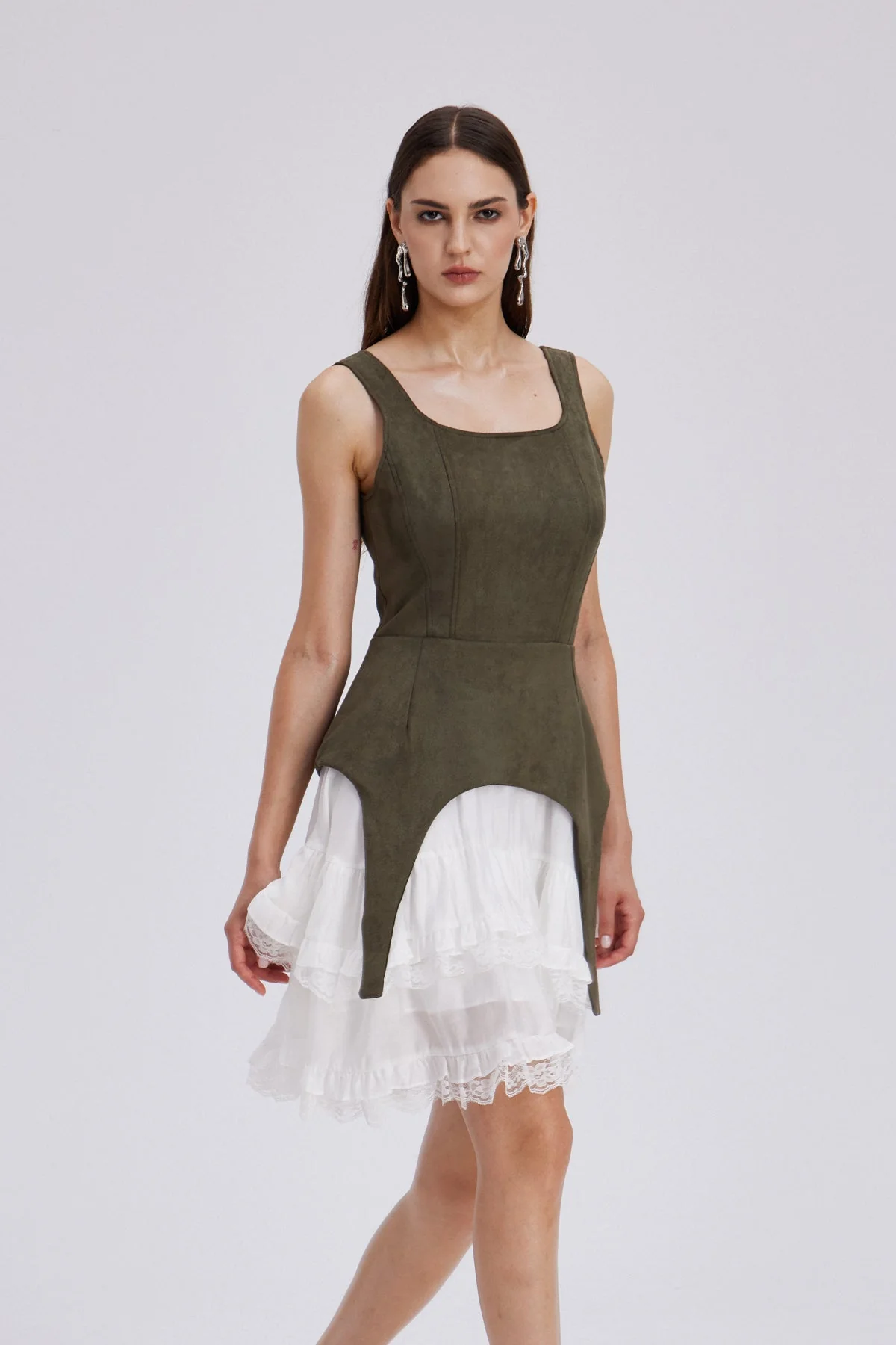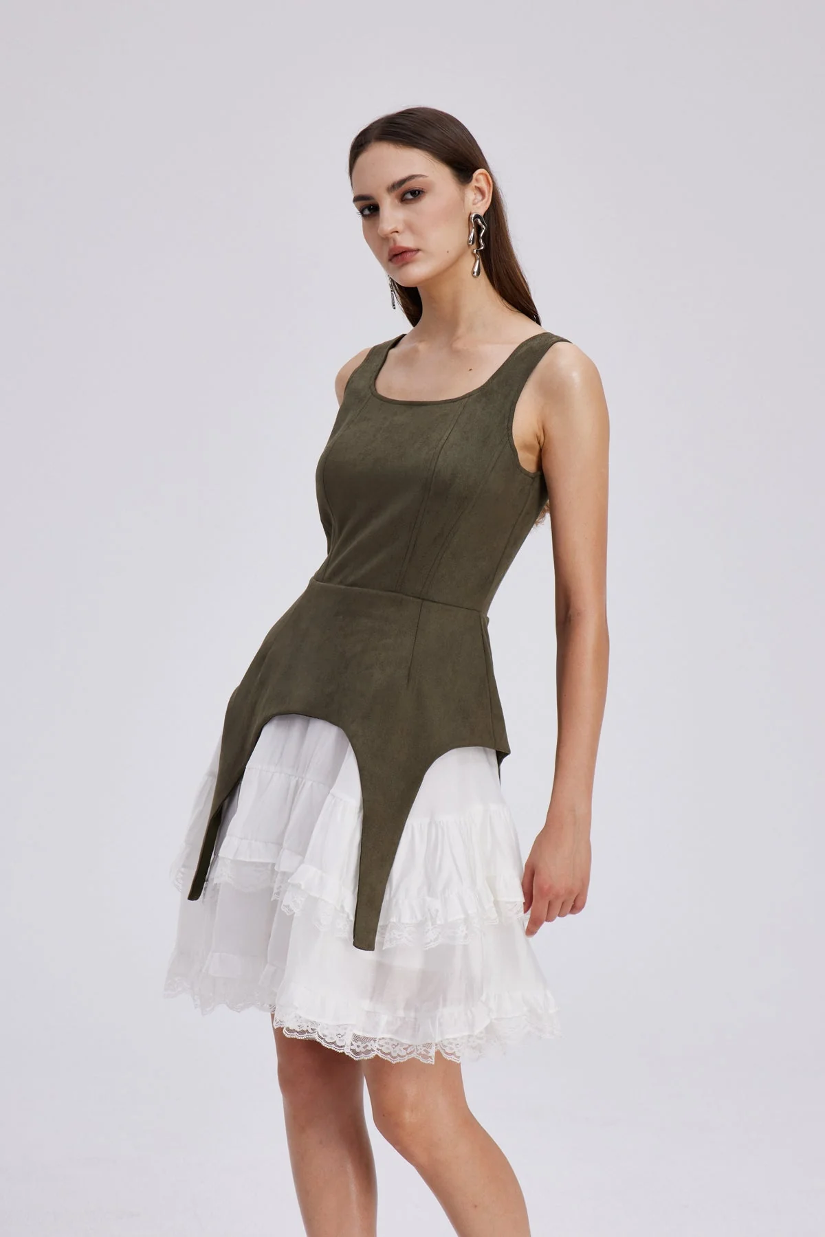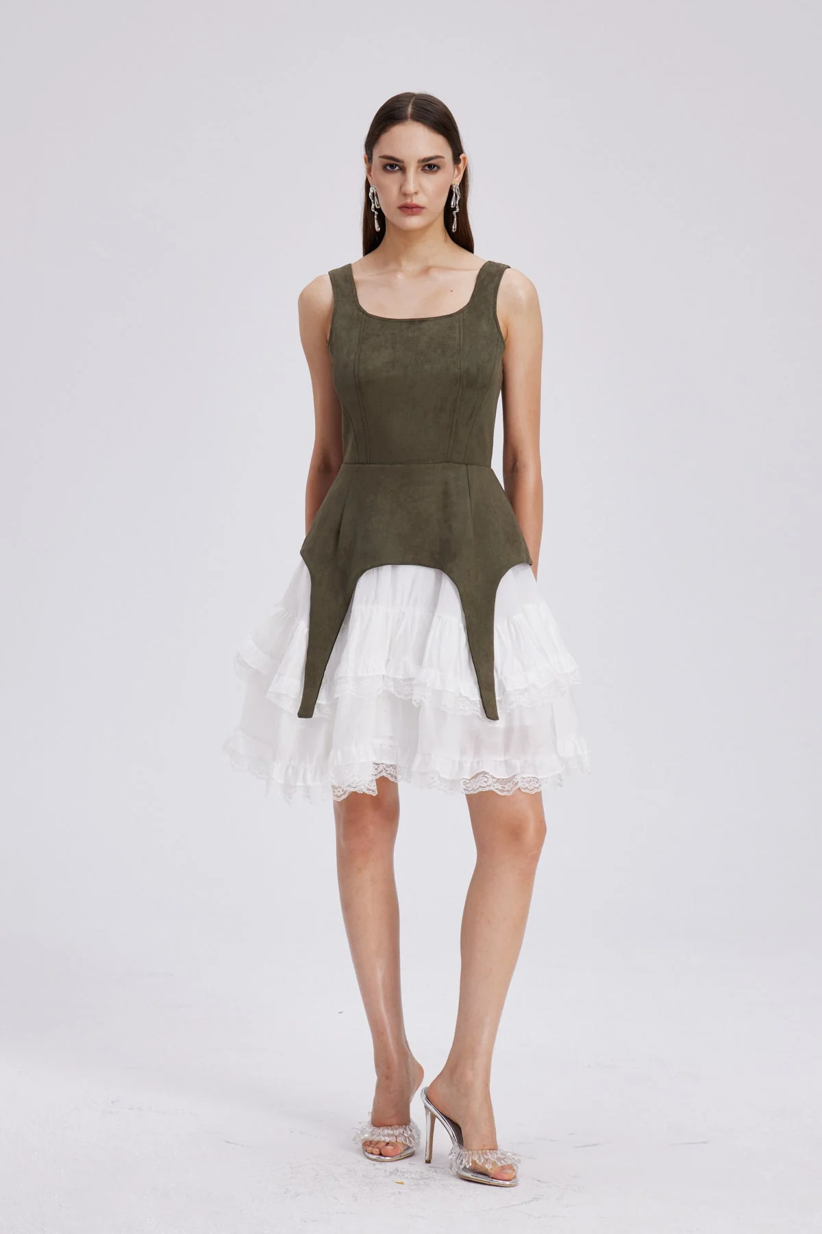 Elevate your wardrobe with the Green Ruffle Lace Sleeveless Mini Dress. This exquisite dress exudes elegance and sophistication with its ruffle lace detailing. The sleeveless design adds a touch of modernity, making it perfect for any occasion. Show off your style and charm with this stunning mini dress. The dress does not stretch and is suitable for gentle machine wash. Please note that the color may vary slightly due to lighting differences in images.