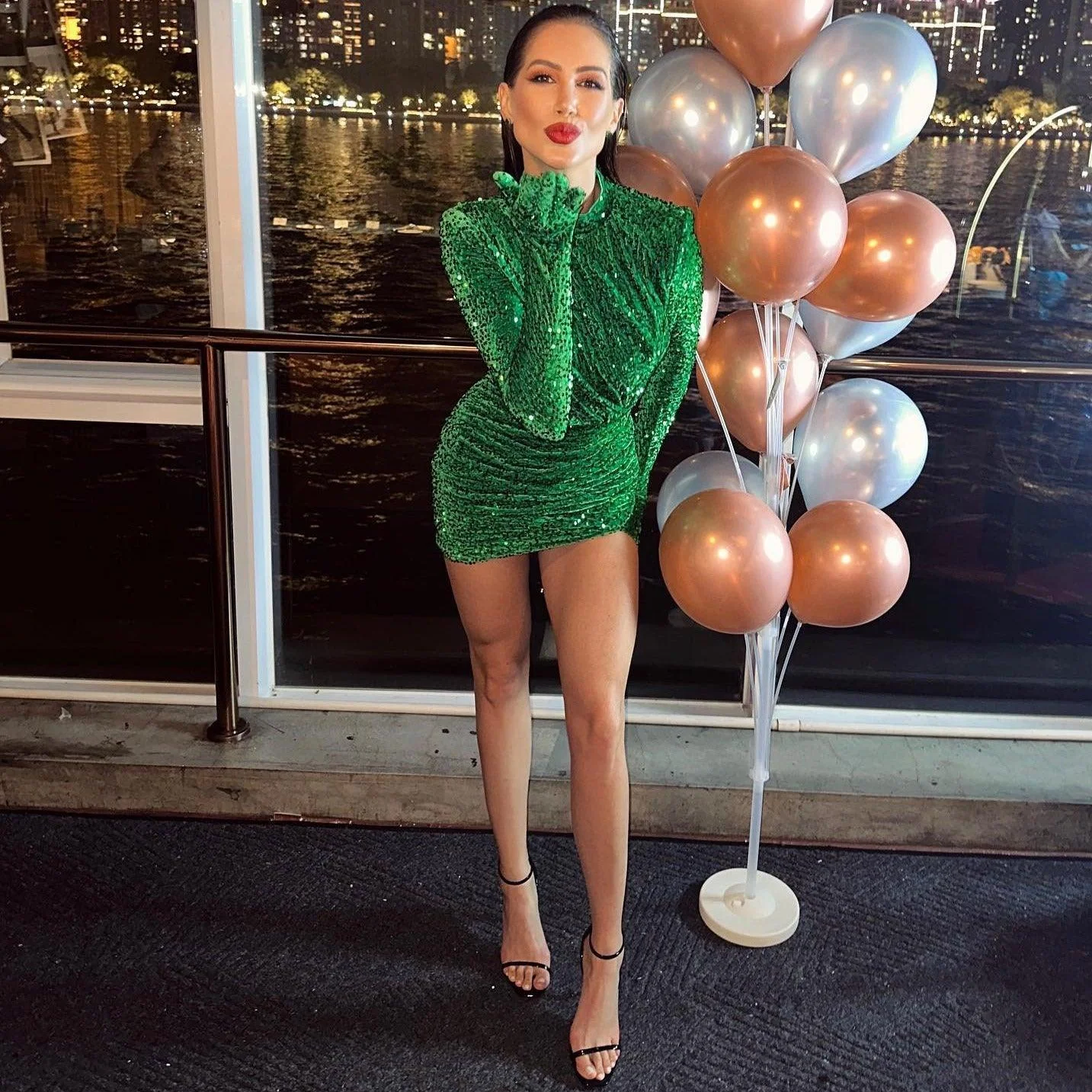 Elevate your style with the Green Sequin Velvet Mini Dress . This stunning mini dress in luxurious velvet with dazzling sequins ensures you shine bright at any special event. The fitted design and long sleeves create a glamorous silhouette, perfect for nights out. Stand out effortlessly with this eye-catching piece that transitions seamlessly from evening elegance to late-night fun. Discover more fashion inspiration on our Instagram @mermaid_way. Enjoy a complimentary exchange if the fit isnt perfect. Order your memorable statement piece now!