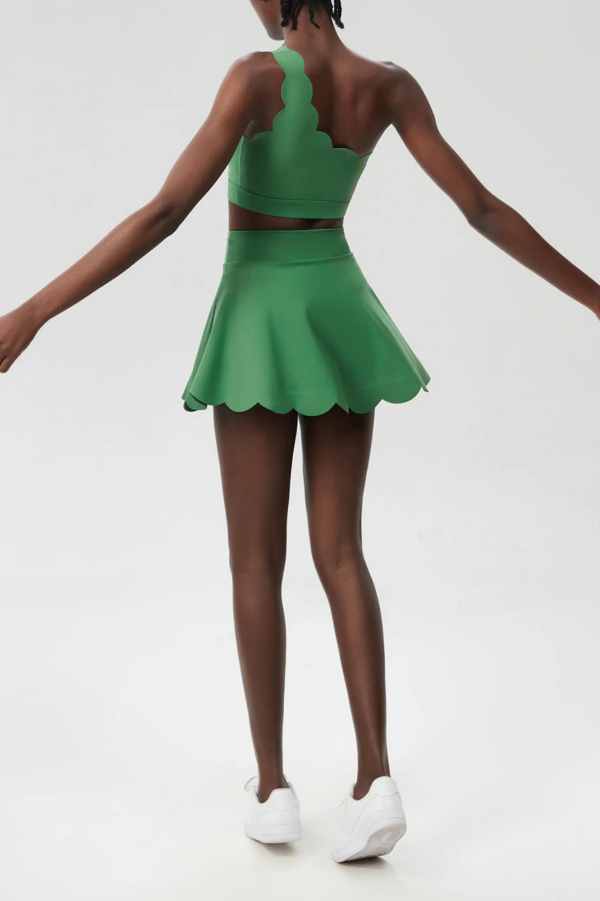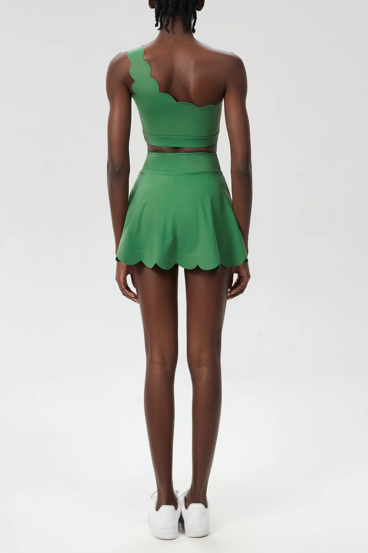 The Green Wave Ruffle Skirt Set exudes style and elegance. This chic set features a single shoulder top and a ruffle skirt, enhancing your feminine silhouette. Made from high-quality materials (50% Polyester, 50% Cotton), it offers both comfort and sophistication. Whether its a special occasion or casual outing, this set is a perfect choice. The slight stretch adds to its comfort. Care instructions: Gentle machine wash. Please note, the actual color may vary slightly due to lighting during photography.