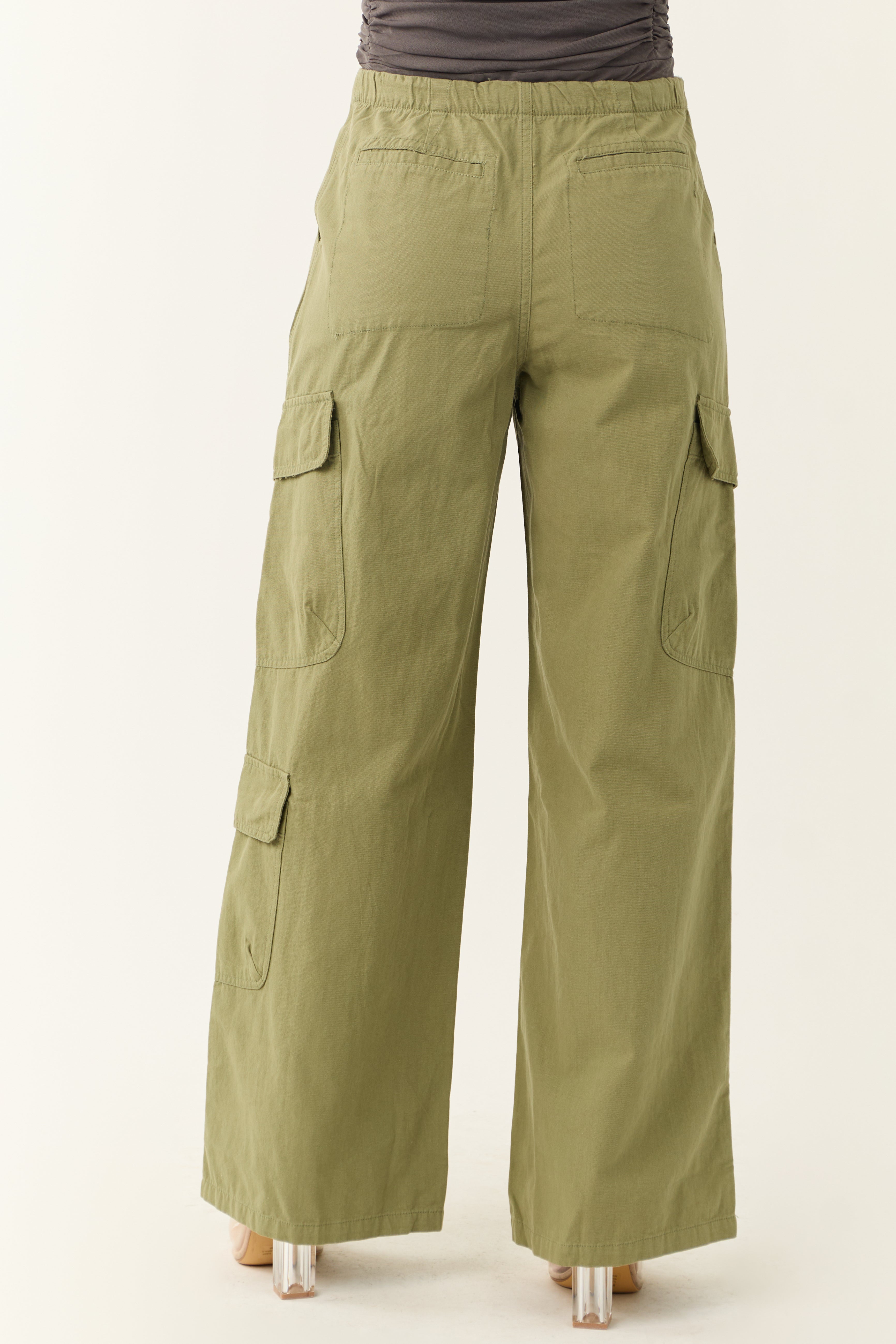 Stay stylish and comfortable in these Green Wide Leg Cargo Pants made of non-stretchy woven 100% Cotton. Featuring front pockets, back pockets, and side cargo pockets, these pants come in sizes Small, Medium, and Large with waist options from 28″ to 32″ and inseam length of 30″. The zipper fly with hook closure adds to the practicality. Hand wash cold, and line dry for best care. Ideal for casual or daytime wear. Model is 55″ tall, wearing a size Small.