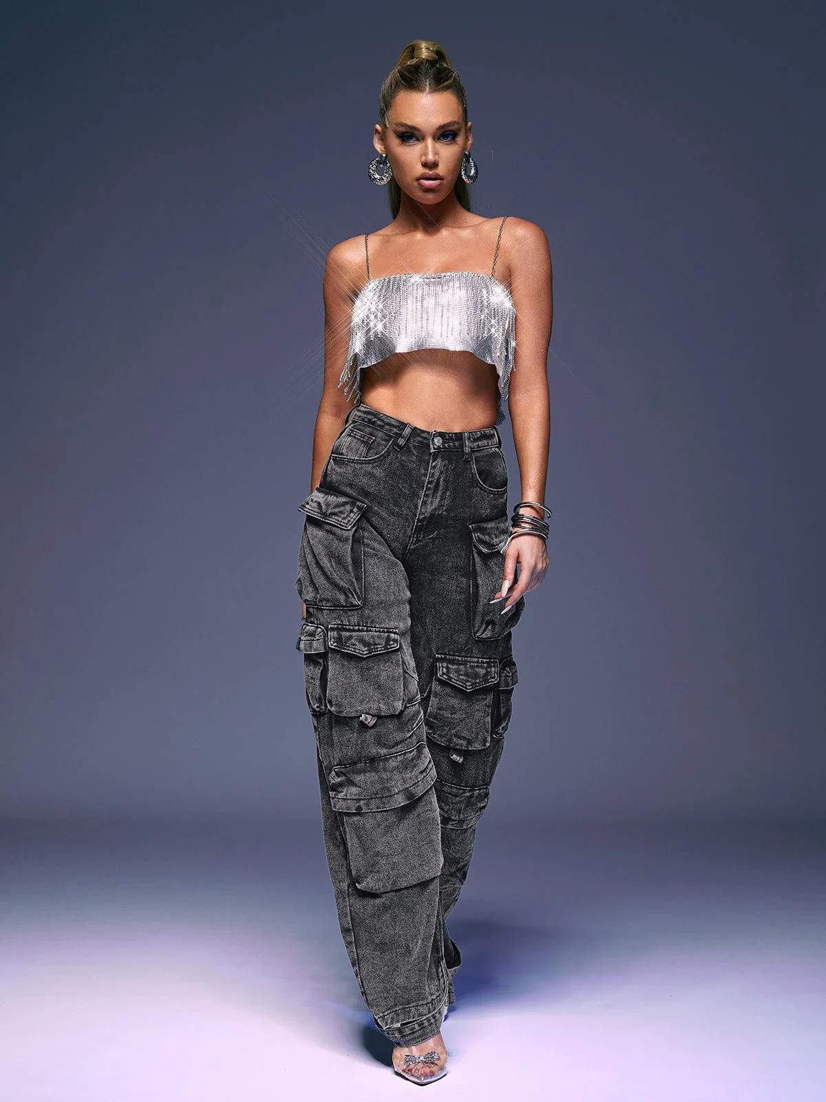 Discover the versatility of our grey denim pants for women in a timeless design suitable for any occasion. Crafted from premium denim, these pants offer comfort with multiple pockets for added convenience. Hand wash cold for easy care. Dont miss out on this wardrobe essential that complements a range of looks. The product images represent the true color of the product. Model is showcased wearing size S. Falls generally somewhere within the bust down the knees. Designed for effortless pairing with various tops and footwear for a complete ensemble youll love wearing.