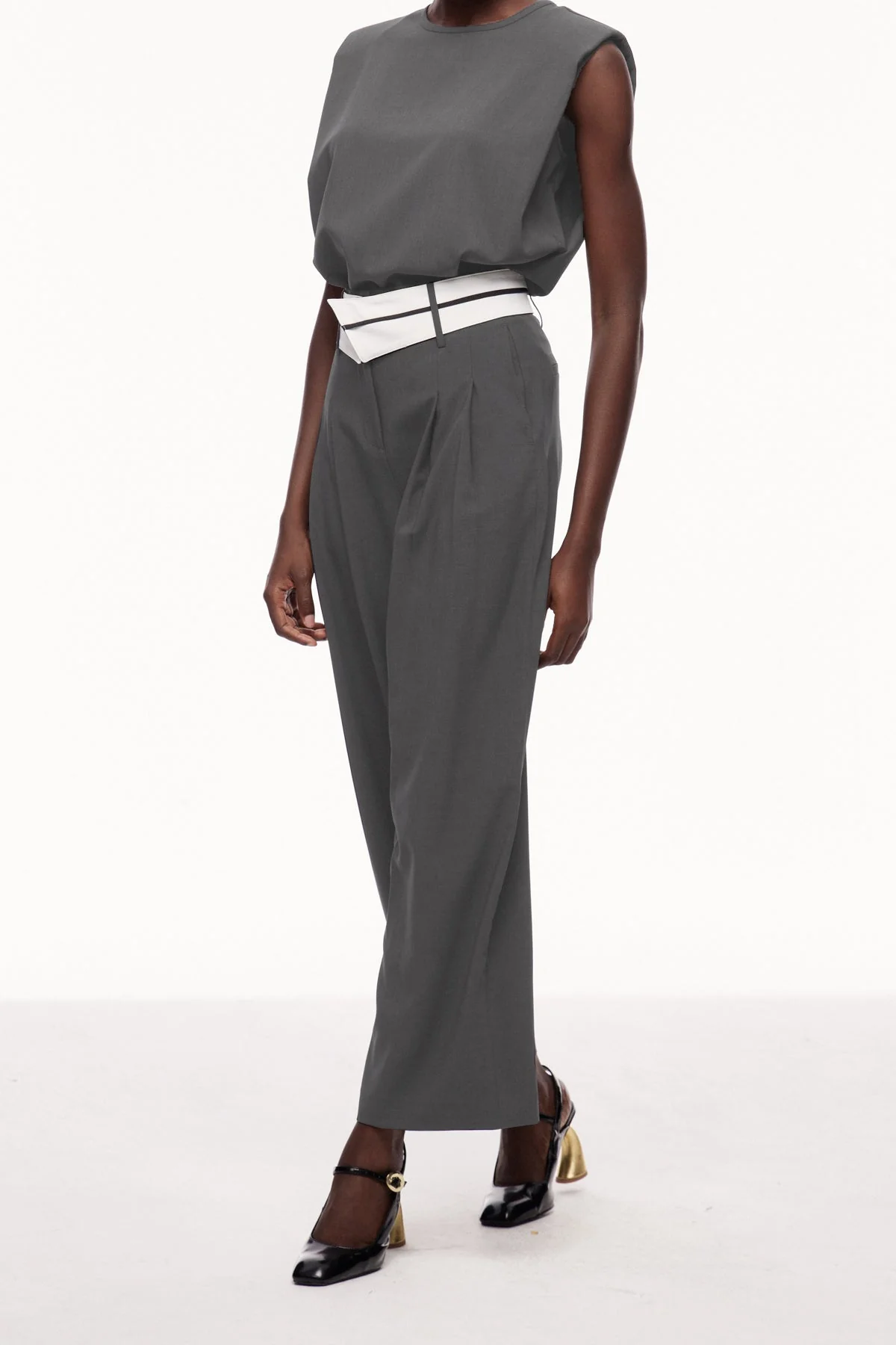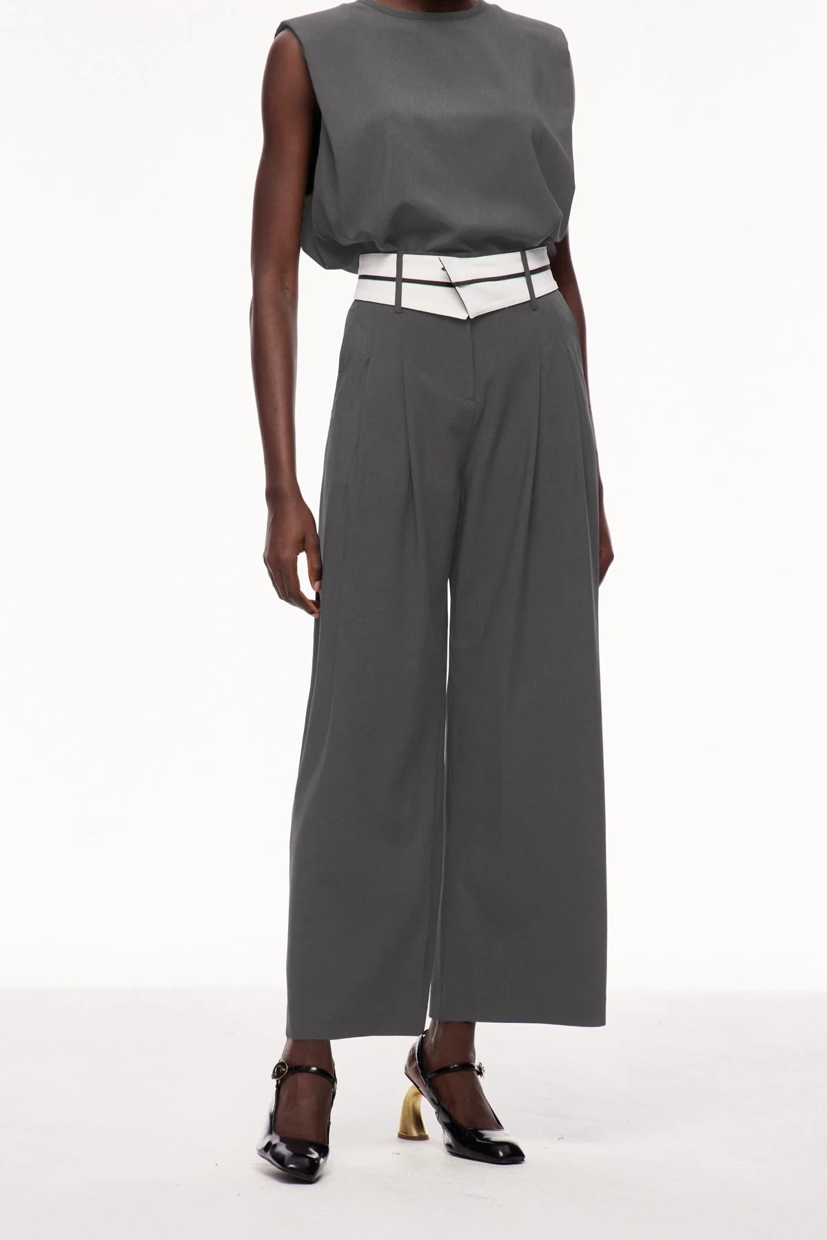 Explore the sophistication of our Grey Lapel Deconstruct Pants. Elevating traditional styling with modern deconstructed details, these pants offer a refined yet edgy look suitable for diverse settings. Expertly crafted for comfort and versatility, they provide a contemporary twist on classic silhouettes. Ideal for professional or creative environments, these pants are a chic essential in any wardrobe.