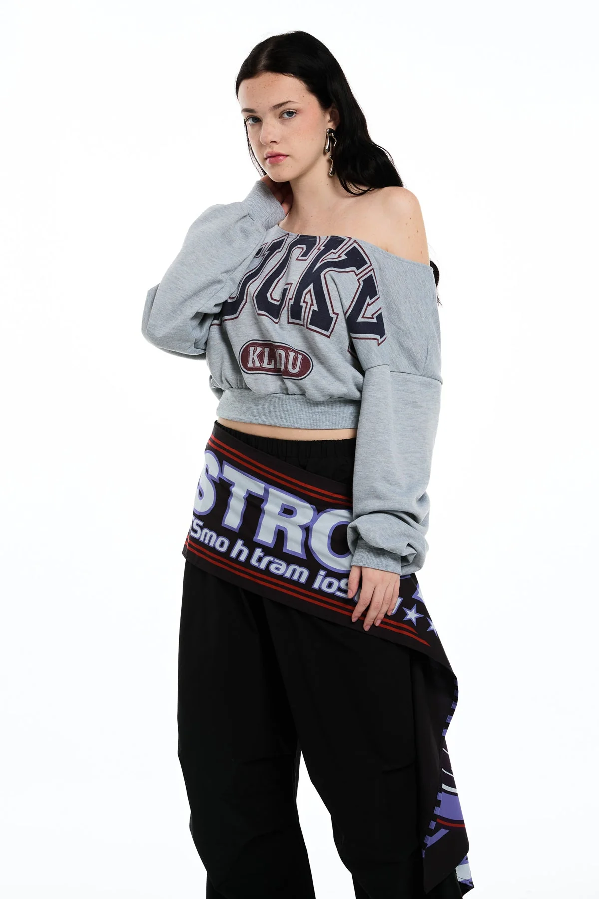 Elevate your style with the Grey Long Sleeve Graphic Print Crop Top . This trendy top blends modern flair with comfort, featuring a cropped silhouette and long sleeves for a chic look. The unique graphic print adds an artistic edge, perfect for mixing and matching in casual or curated outfits. Designed for both fashion and comfort, this top ensures a polished appearance all day long. Whether you layer it up or wear it solo, this top is a versatile staple in your wardrobe. Crafted for comfort and style with a slight stretch, this top is easy-care: simply machine wash on a gentle cycle. Color variations may occur due to lighting during photography.