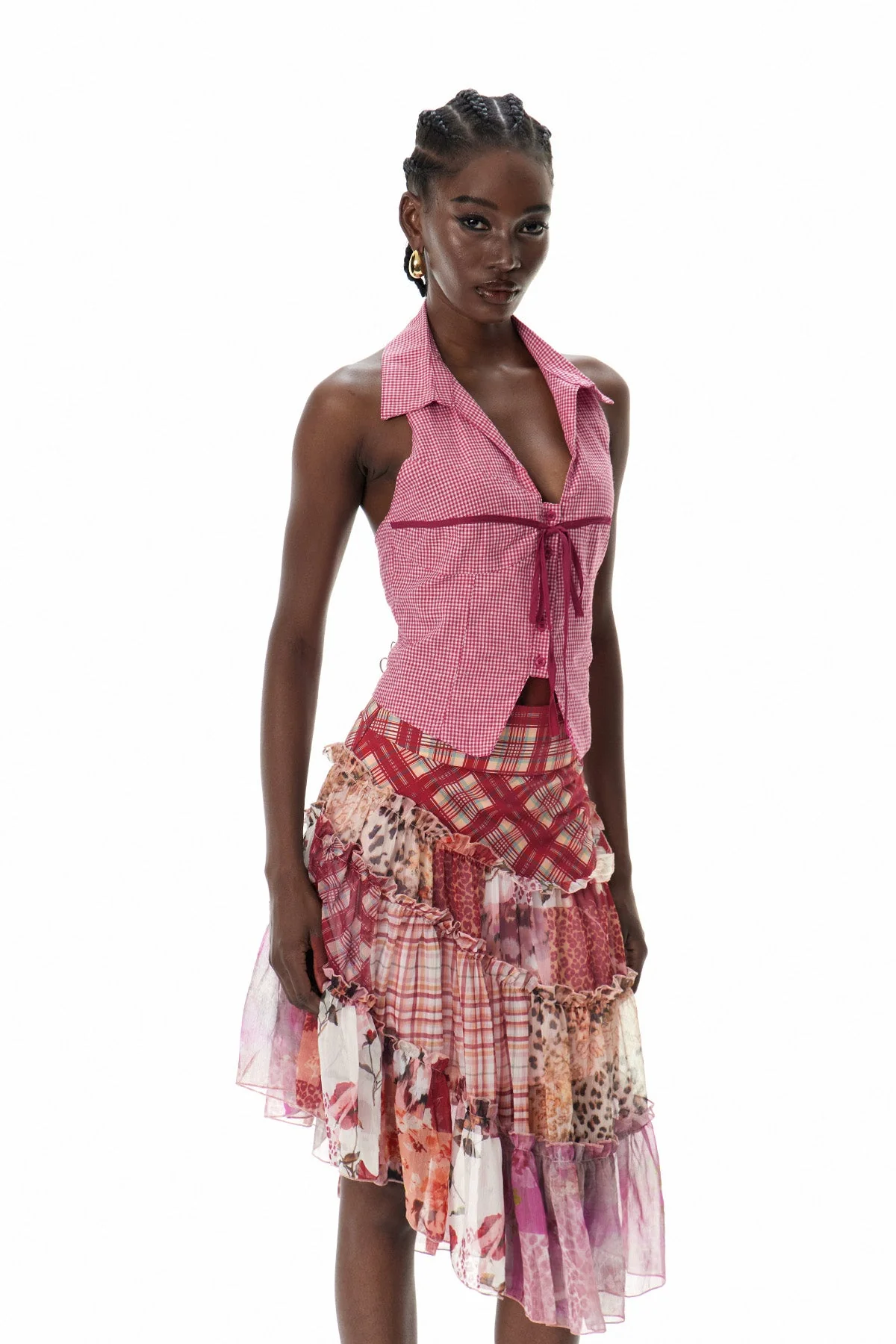 The Grid Pattern Lapel Top in Red offers a sophisticated silhouette with a modern twist. Tailored for comfort, the lapel design enhances your figure while the grid print adds visual appeal. Whether for work or casual outings, this top effortlessly combines style and refinement. Experience the perfect blend of elegance and comfort. Color variations may occur due to image lighting. Gentle machine wash recommended for care.