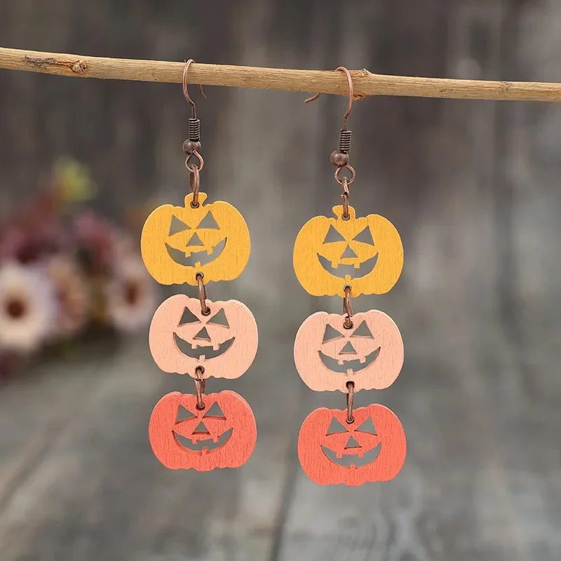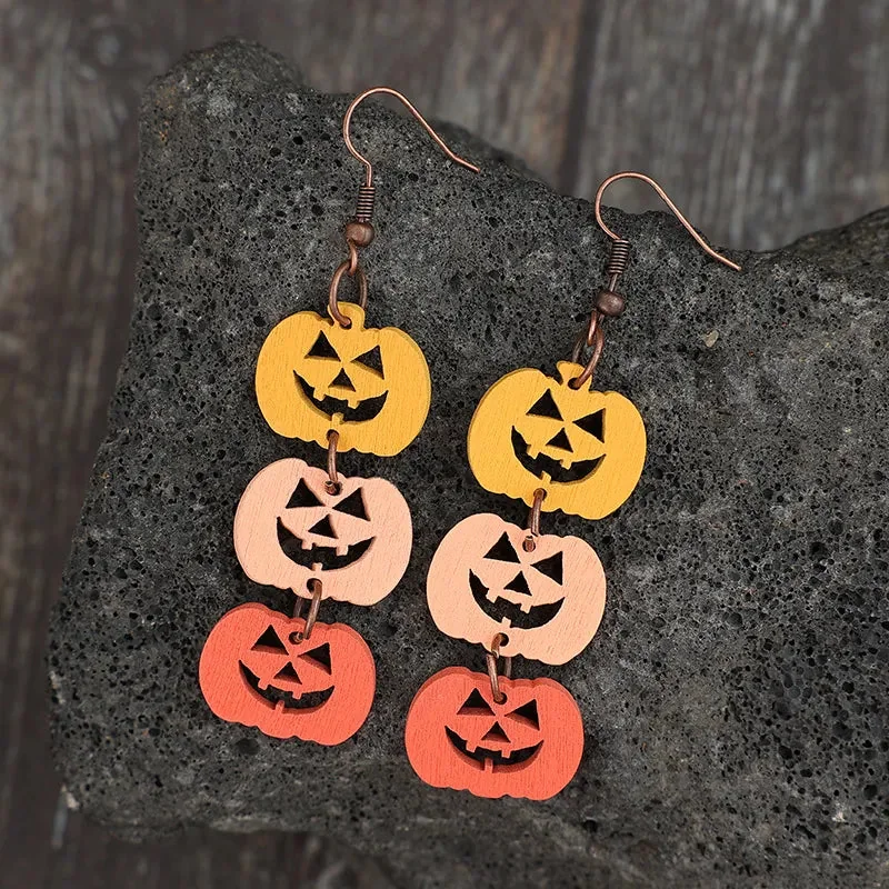 Enhance your Halloween look with these stylish Halloween Contrast Pumpkin Wooden Earrings in Tangerine. Made of high-quality alloy and wood, these earrings are a perfect seasonal accessory. Avoid wearing during exercise to preserve their quality. Imported product featuring Length: 2.9 inches and Weight: 0.2 oz (7 g). Add a touch of festive charm to your outfit with these unique earrings.